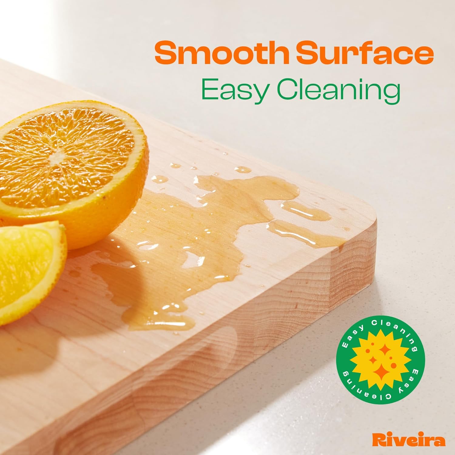 - Premium Crafted Maple — Take a detour from traditional kitchen aesthetics with this maple wood board crafted from 100% natural maple. Beyond being an unconventional and eco-friendly choice, the chopping board wood proudly showcases the environment friendly and organic maple. This wood cutting boards for kitchen counter adds an unexpected touch of confidence and style to your once-orderly culinary space. Riviera's wooden chopping boards for kitchen will be there for you for many years to come.