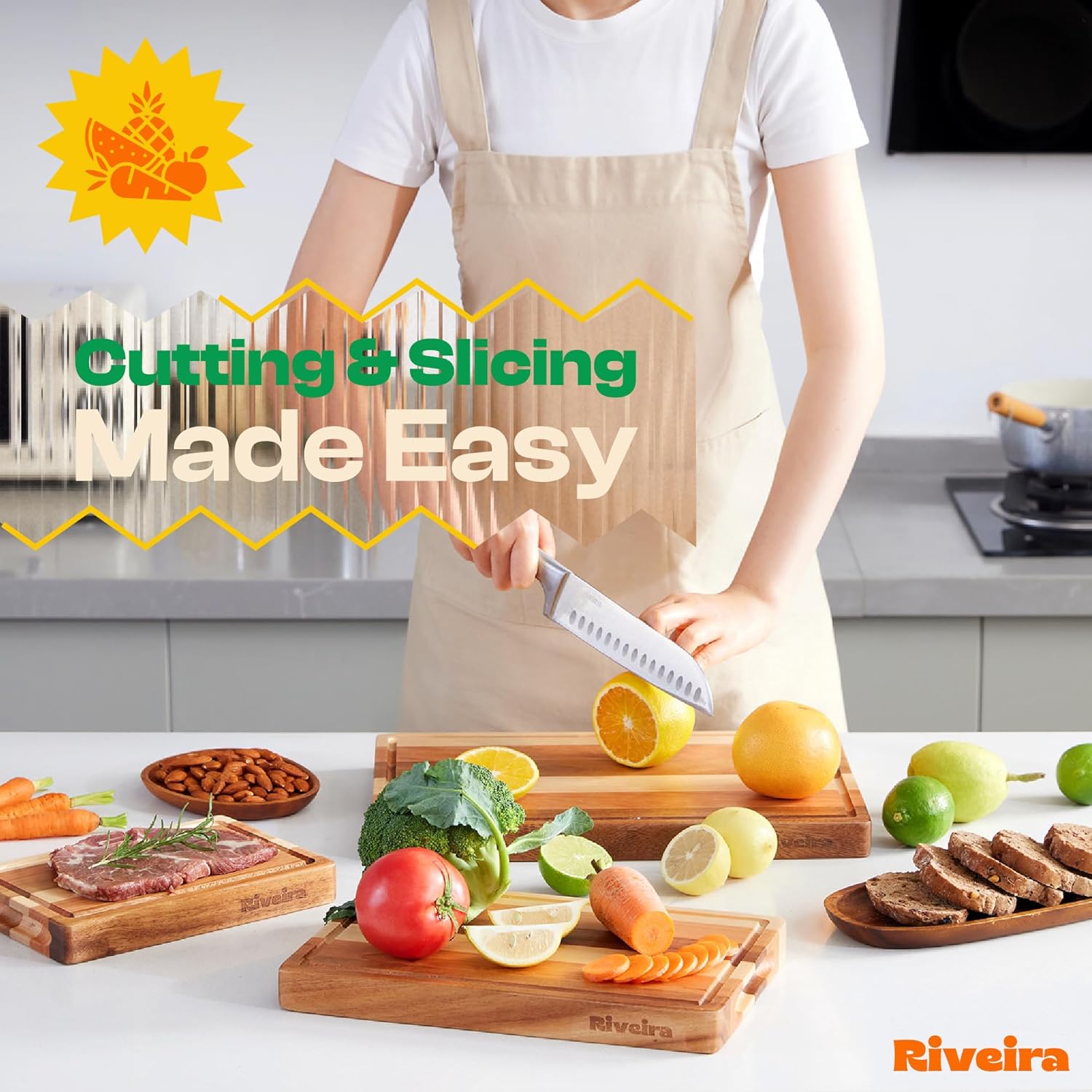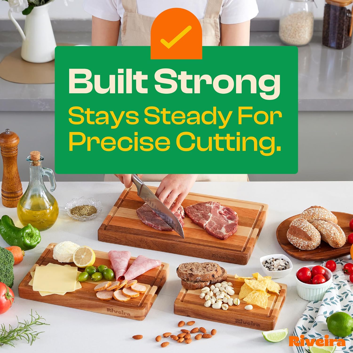 Riveira Walnut/Cherry/Maple Wood Cutting Board Set - Versatile And Durable: 3 Pcs Wooden Cutting Boards - Natural Wooden Cutting Boards For Kitchen Set - Complete Walnut/Cherry/Maple Cutting Board