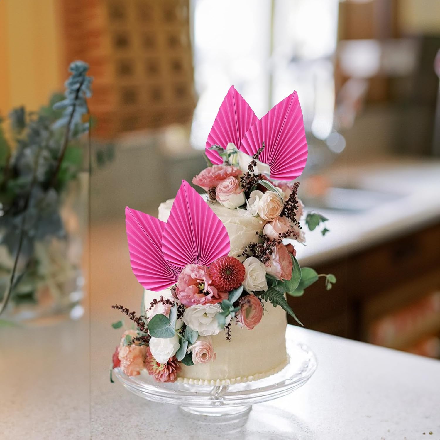 - -Package included: 6Pcs Paper Palm Fan Cake Toppers. Comes with unassembled, so you can insert into your cake with stick, which make your cake more interesting.