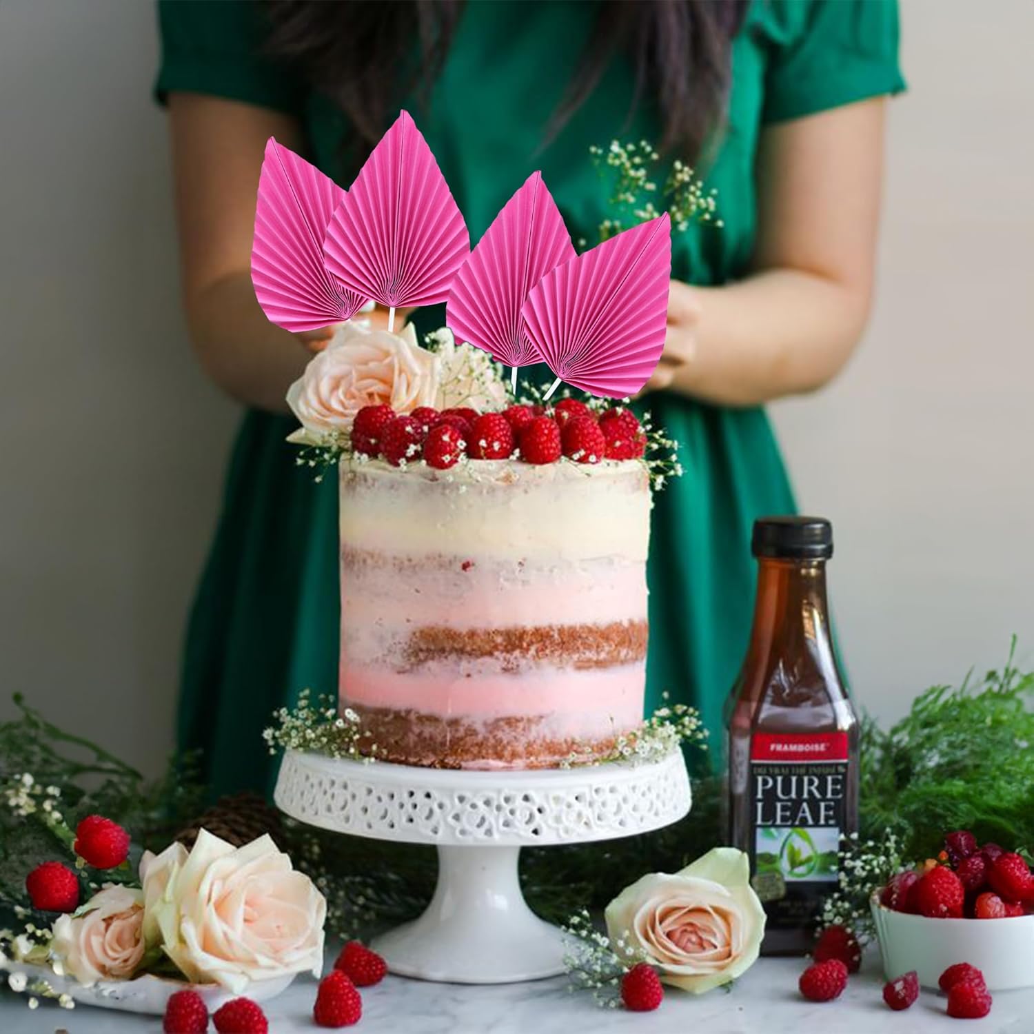 - -Premium Material: These Paper Palm Fan Cake Toppers are made of high quality paper material and food-grade toothpick, very safe to put them on cakes, cupcakes, ice cream, fruits, pie, dessert, cheese or any dish and food appetizer you want to decorate Wedding theme Party decorations.