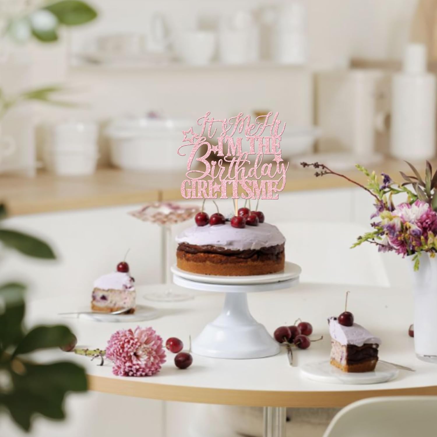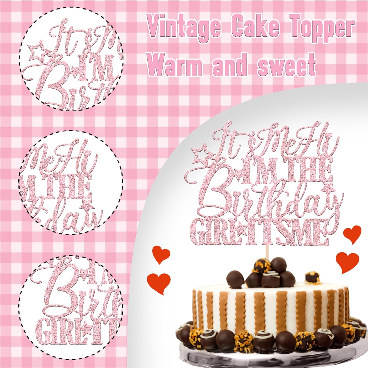 1 PCS It's Me Hi I'm the Birthday Girl It's Me Cake Topper Glitter Funny Girls Birthday Cake Pick for Hot Pop Music Singer Birthday Party Cake Decorations Supplies Light Pink