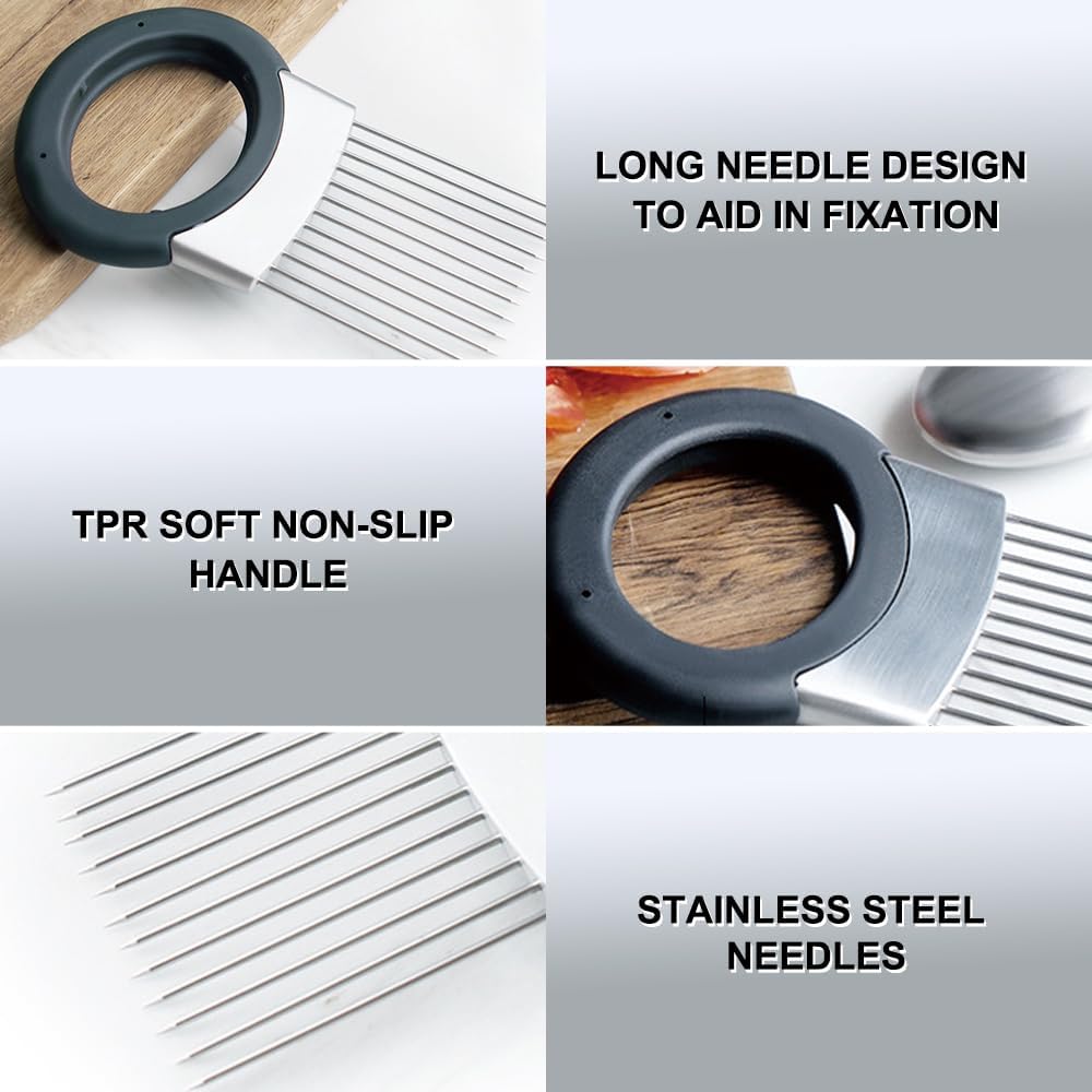 - ăSafe SlicingăThrough its unique design, the onion fork clamp can firmly hold the onion, so that when slicing or dicing, the onion will not slide or roll, which improves the safety of the slicing process