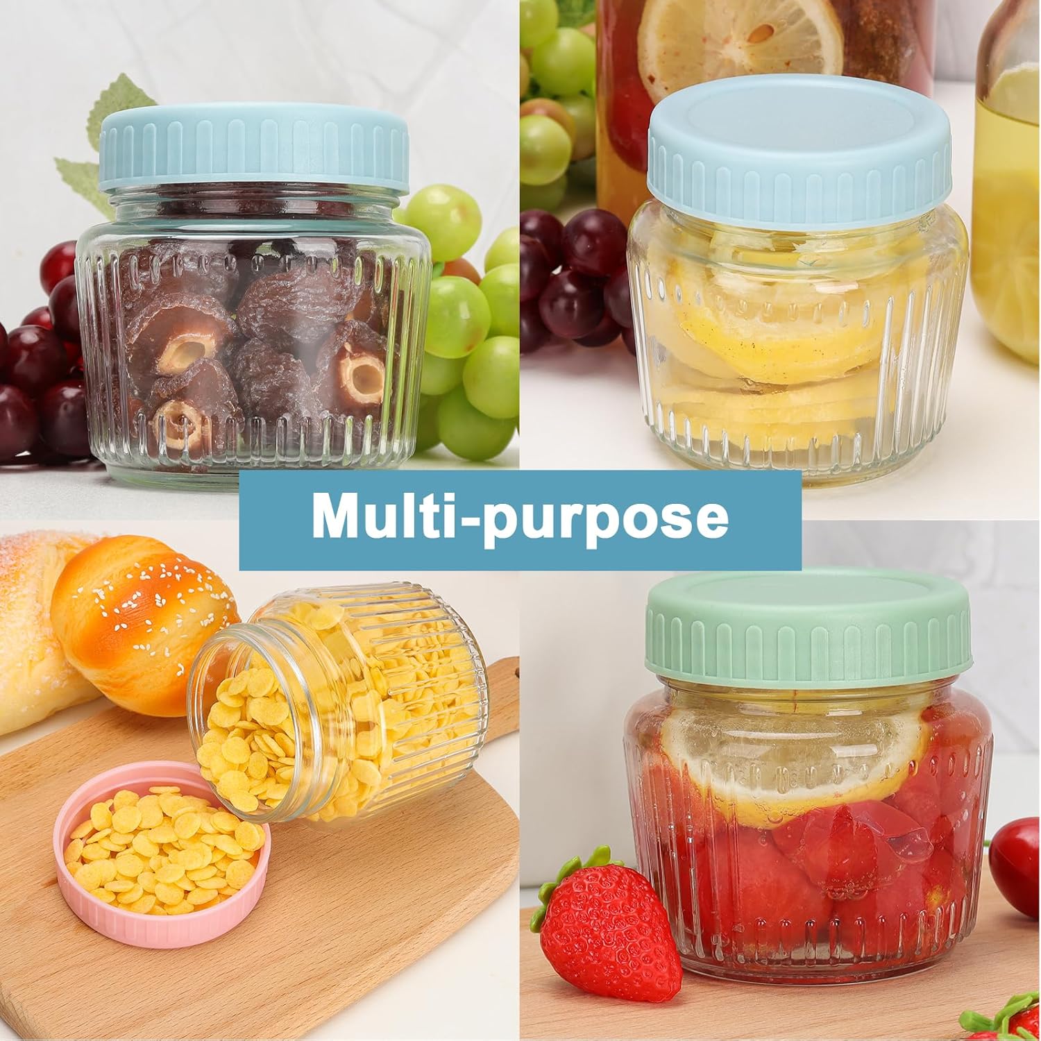 - Unique Design: Vertically ribbed vintage styling on the exterior. Made of premium food grade glass, colorful plastic lids, the canning jars are durable and sturdy enough for everyday home use