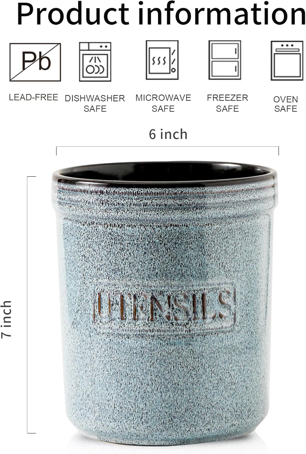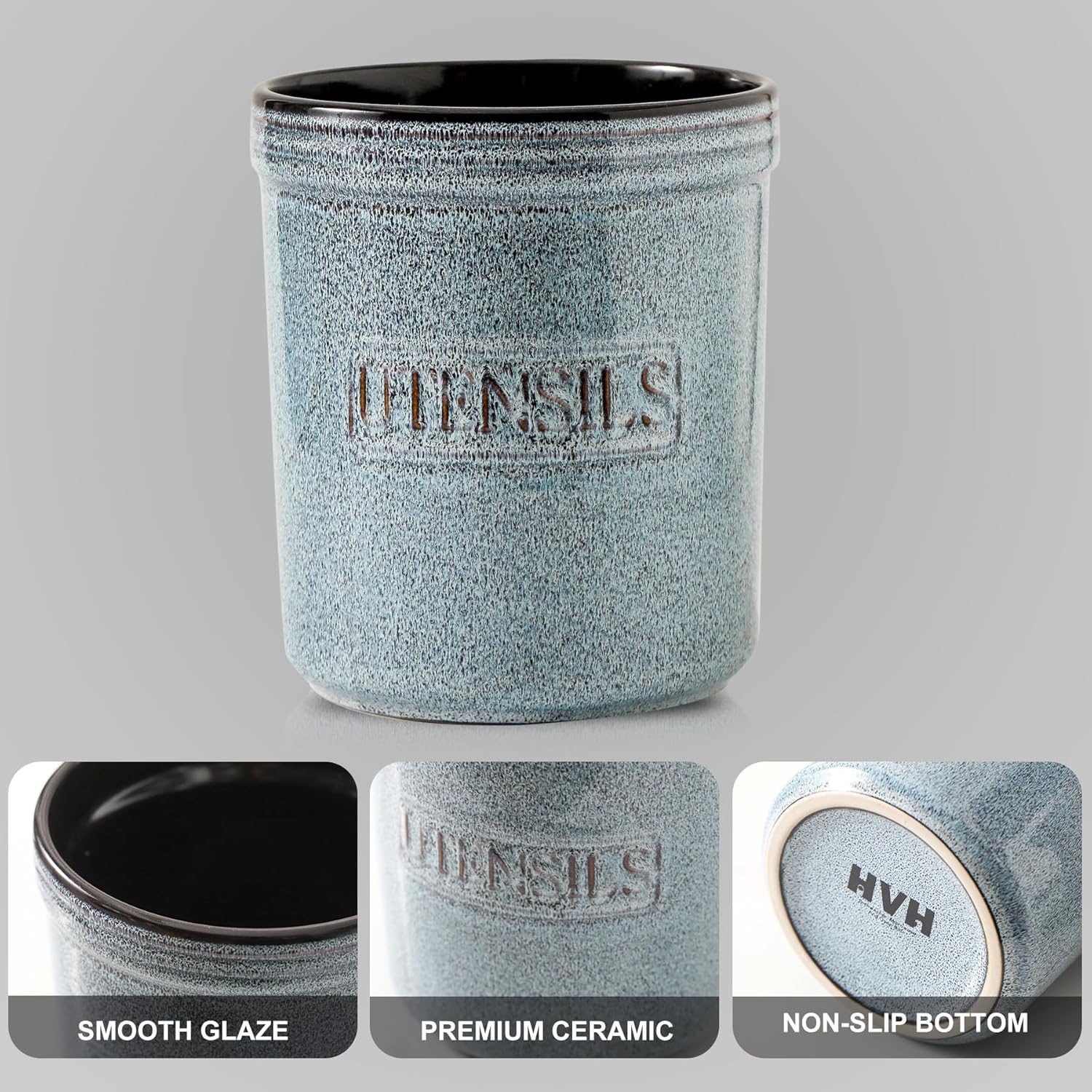- Material Safety: The HVH farmhouse utensil holder made of high-quality ceramics, lead-free, safe materials, so there is no need to worry about no harmful substances penetrating into food.The utensil caddy is heavy and strong enough to avoid topple over.