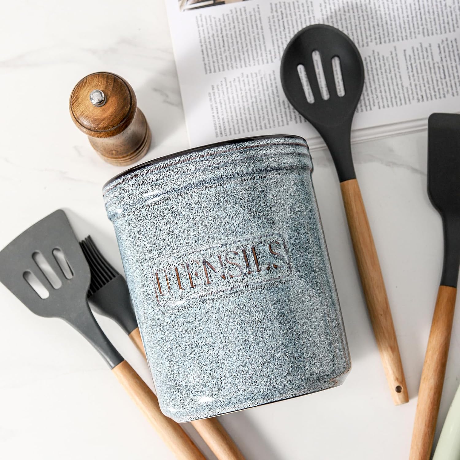 - Easy to Clean: The smooth glaze protects the kitchen utensils holder from stains, making it easy to clean by dishwasher or hand, without worrying about breakage and glaze wear. It is safe for refrigerators and dishwashers.