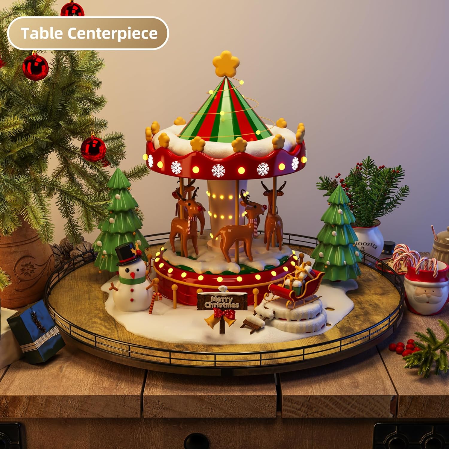 Lazy Susan Turntable Organizer for Table Top, 24’’ Round Wooden Lazy Susan for Cabinet Kitchen Countertop Pantry Dining Coffee Table for Condiments Spices, Rustic Bathroom Vanity Tray for Soap Candle