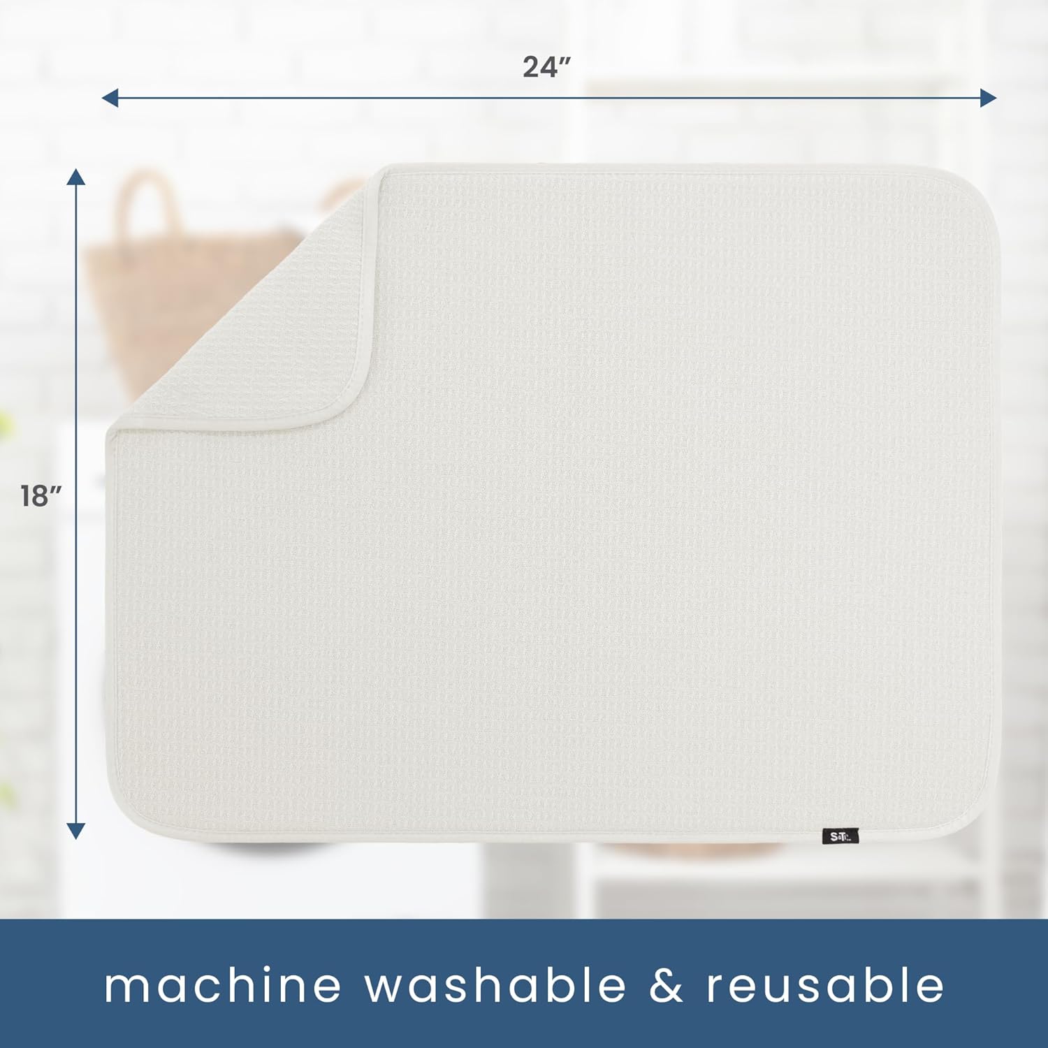 S&T INC. Dish Drying Mat XL, 18” x 24”, Absorbent Microfiber Kitchen Counter Mat, Dish Drying Pad for Dishes, Utensils, Pots and Pans, Extra Large, Cream