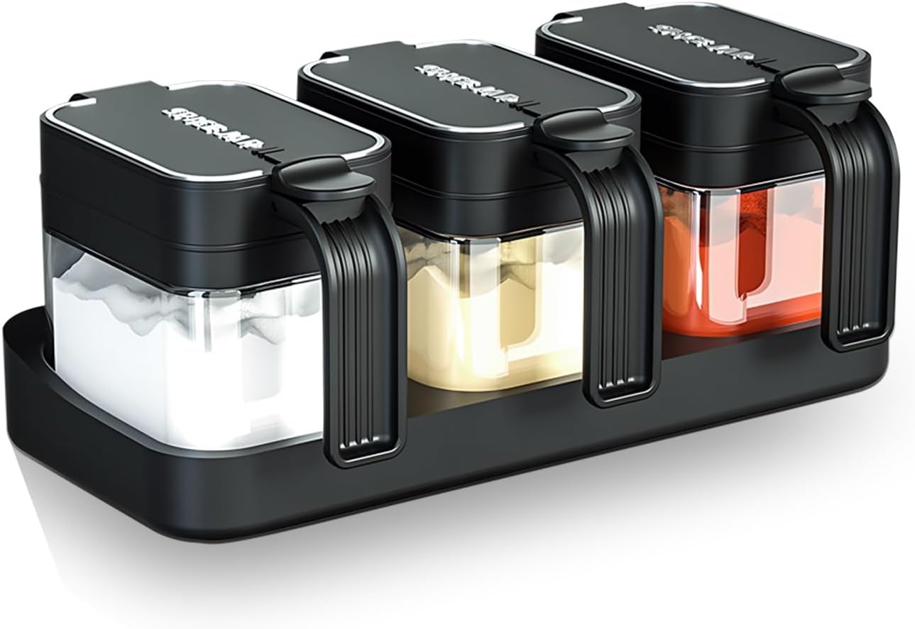 - Strong Sealing and Easy to Use: The flip-top seasoning box has a built-in rubber seal to effectively prevent moisture and dust, ensuring the quality of the seasoning. The transparent sugar bowl facilitates easy identification of seasonings, and its ingenious design also enables effortless one-handed lid opening, thereby enhancing cooking efficiency and reducing meal preparation time