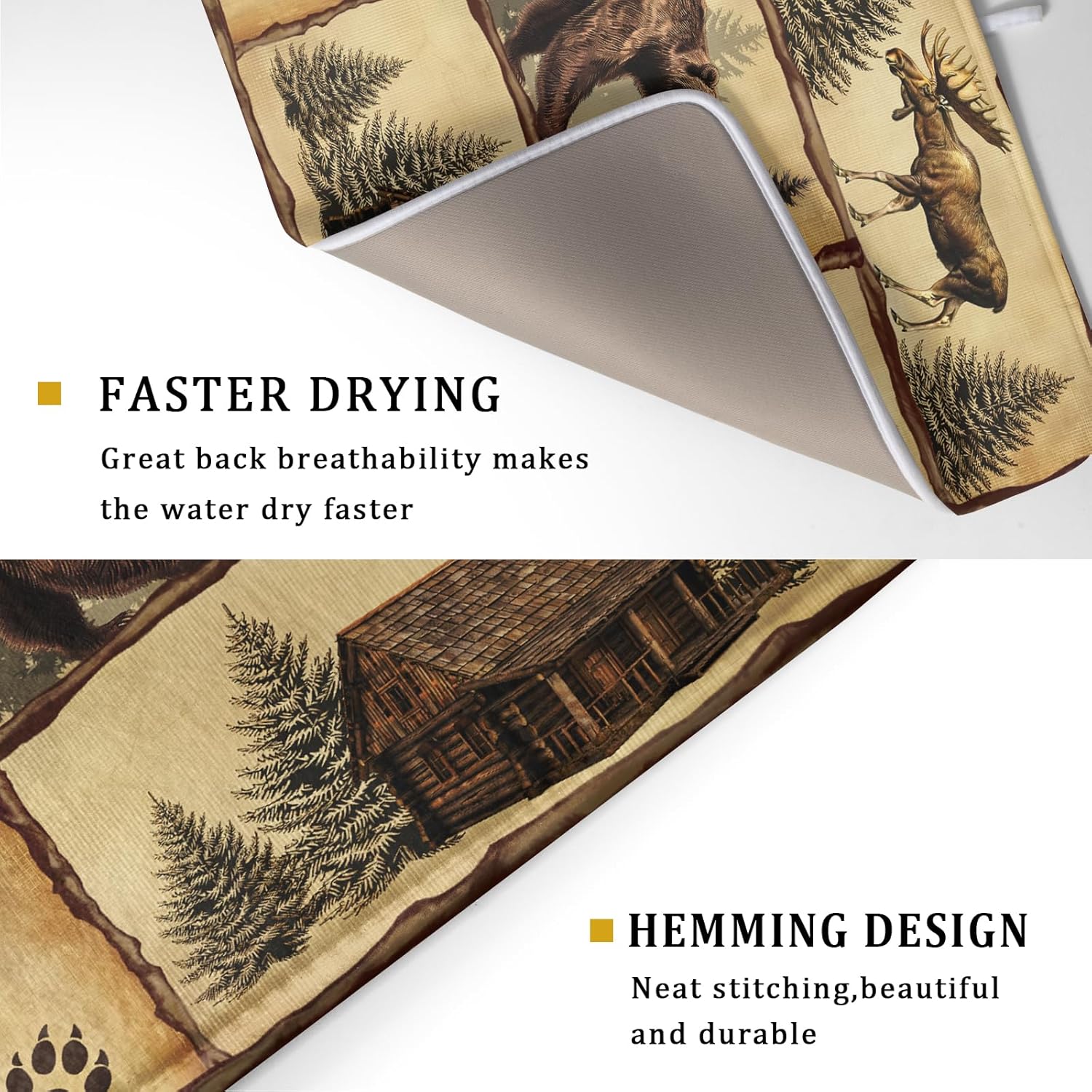 - 【Easy to Storage】This rustic lodge design drying mat with hang rope, soft and foldable, durable, easy to storage it by hanging or folding it up in a drawer or tuck it elsewhere. Perfect for tight spaces like campers, boats and cottages where having a dual purpose item will come in handy.