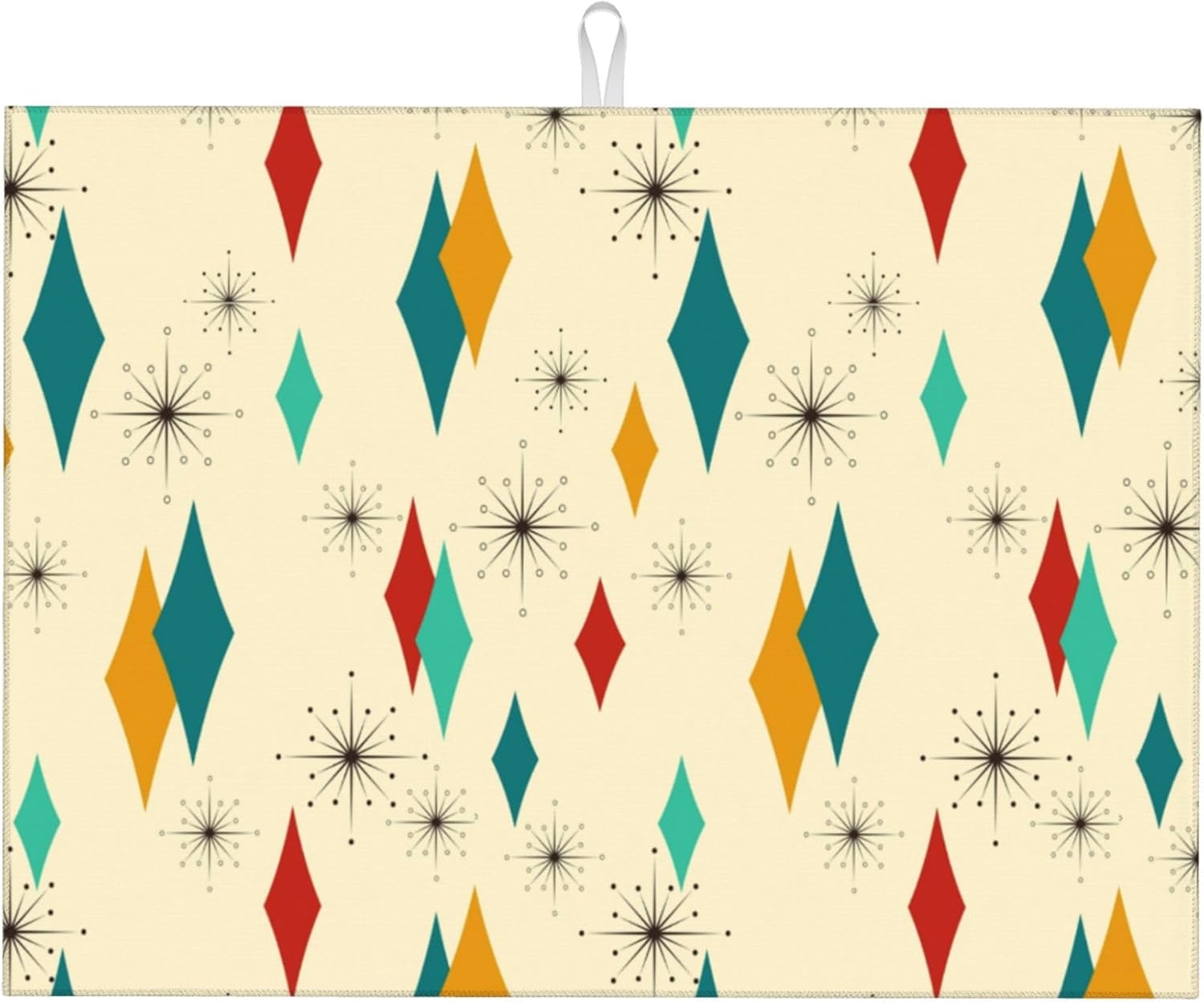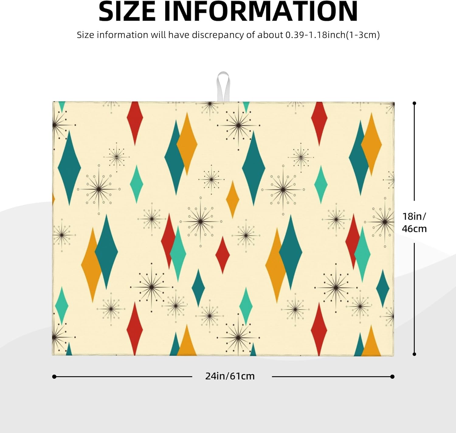 Mid Century Modern Dish Drying Mat for Kitchen Counter Atomic Retro Drying Pad 18x24 Inch Modern Absorbent Reversible Yellow Dish Drainer Rack Mats