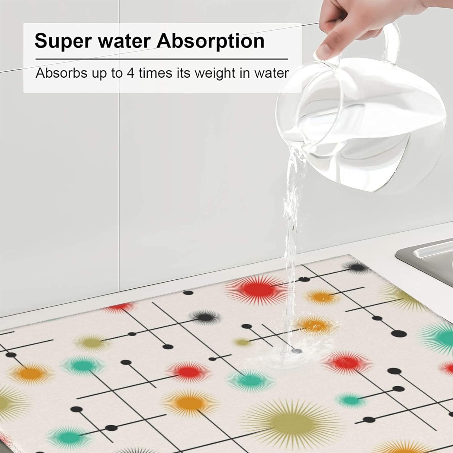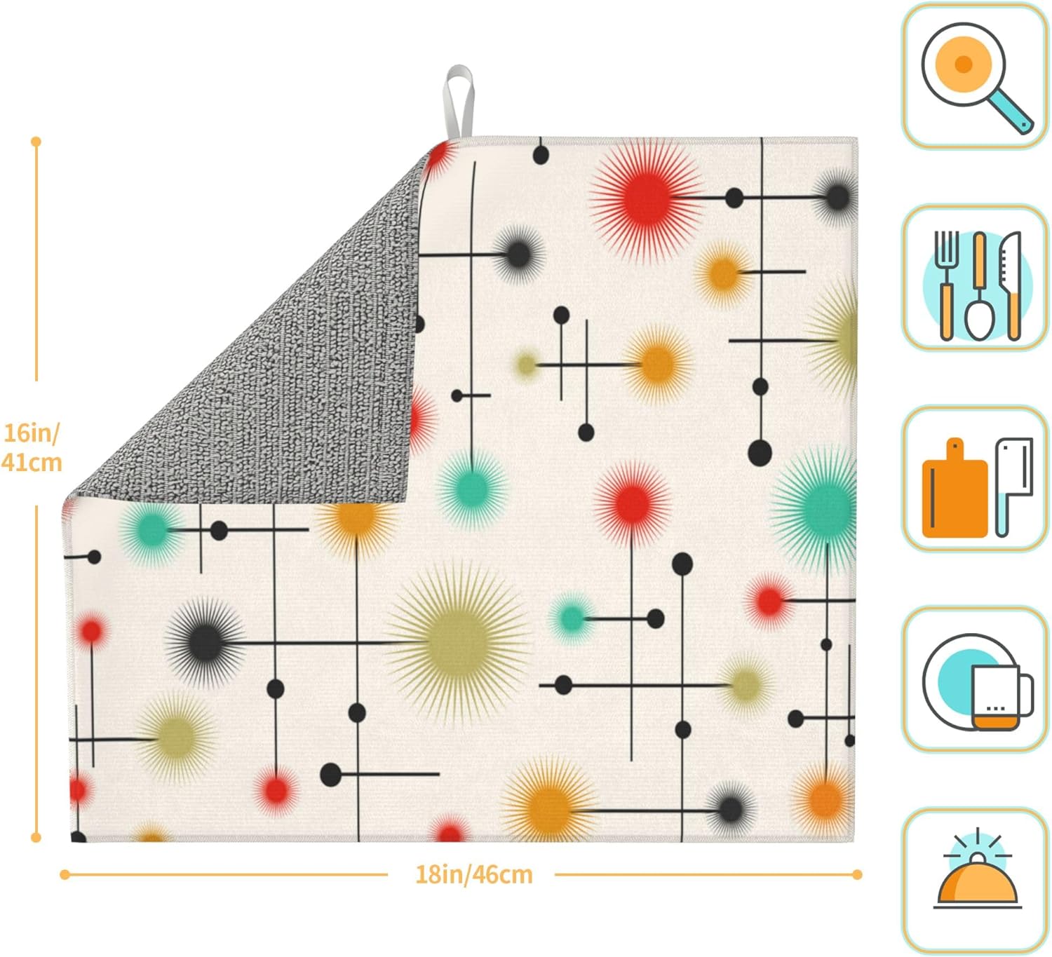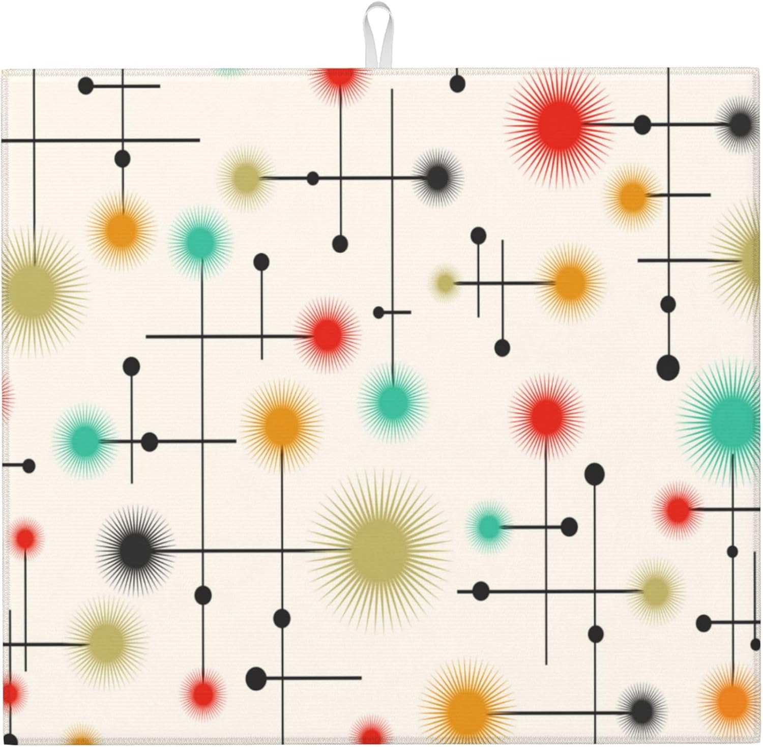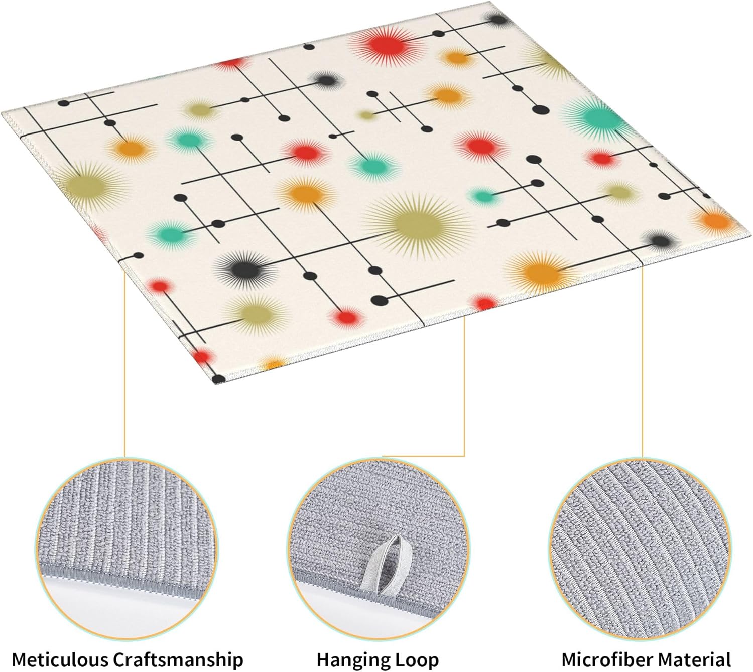 Mid Century Modern Dish Drying Mat for Kitchen Counter Yellow Washable Absorbent Reversible Microfiber Retro Drying Pad Kitchen Accessories 16x18 Inch