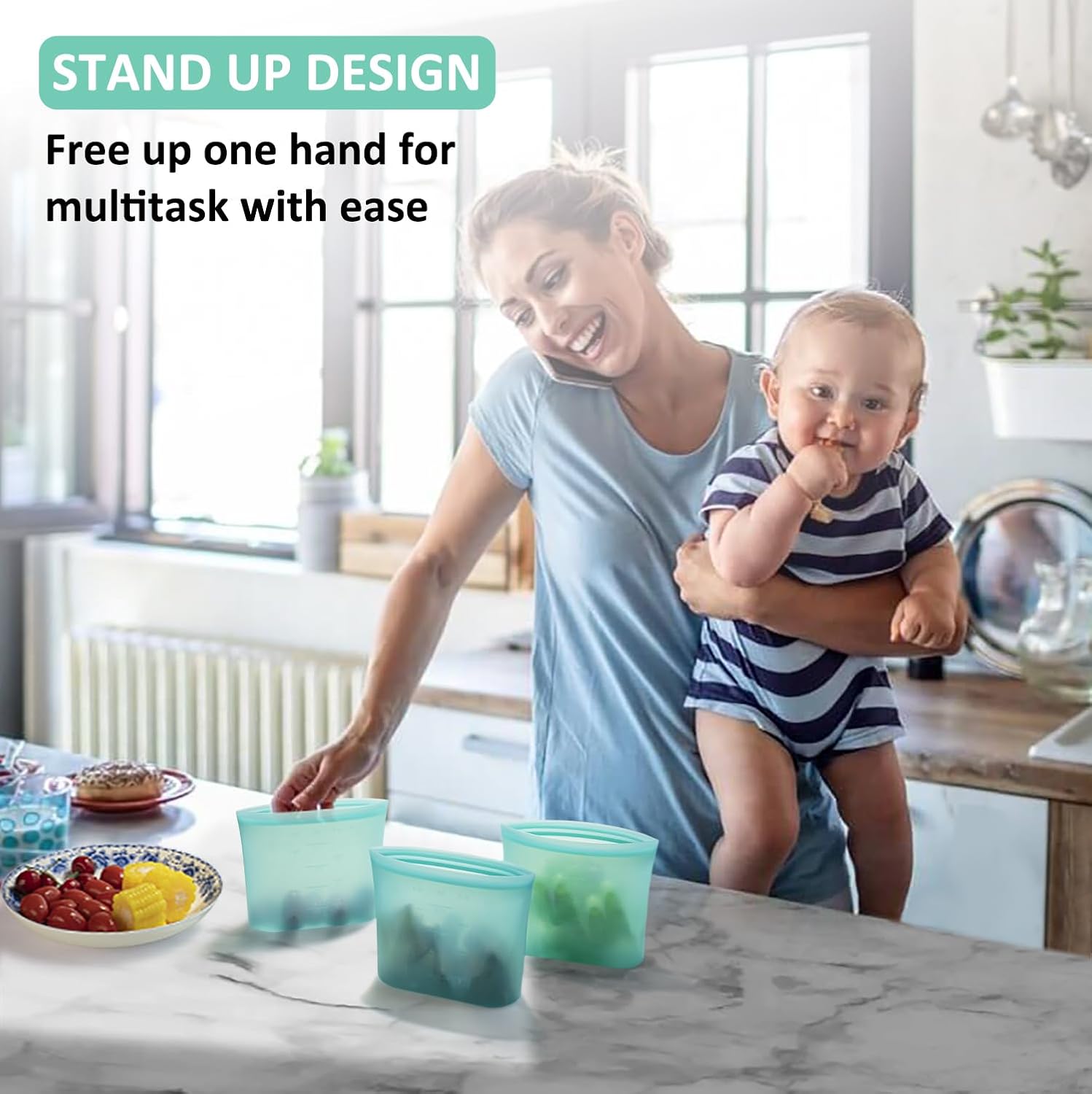 - ăZIP-LOCK & STAND-UP DESIGNăThese reusable silicone bags feature a hassle-free zip-lock closure for effortless opening and closing - no need to worry about losing pesky lids! Their stand-up design allows you to multitask, freeing up one hand to tend to your little one with ease. Plus, flexible material also makes them extremely user-friendly and pressing out air before sealing helps save valuable space