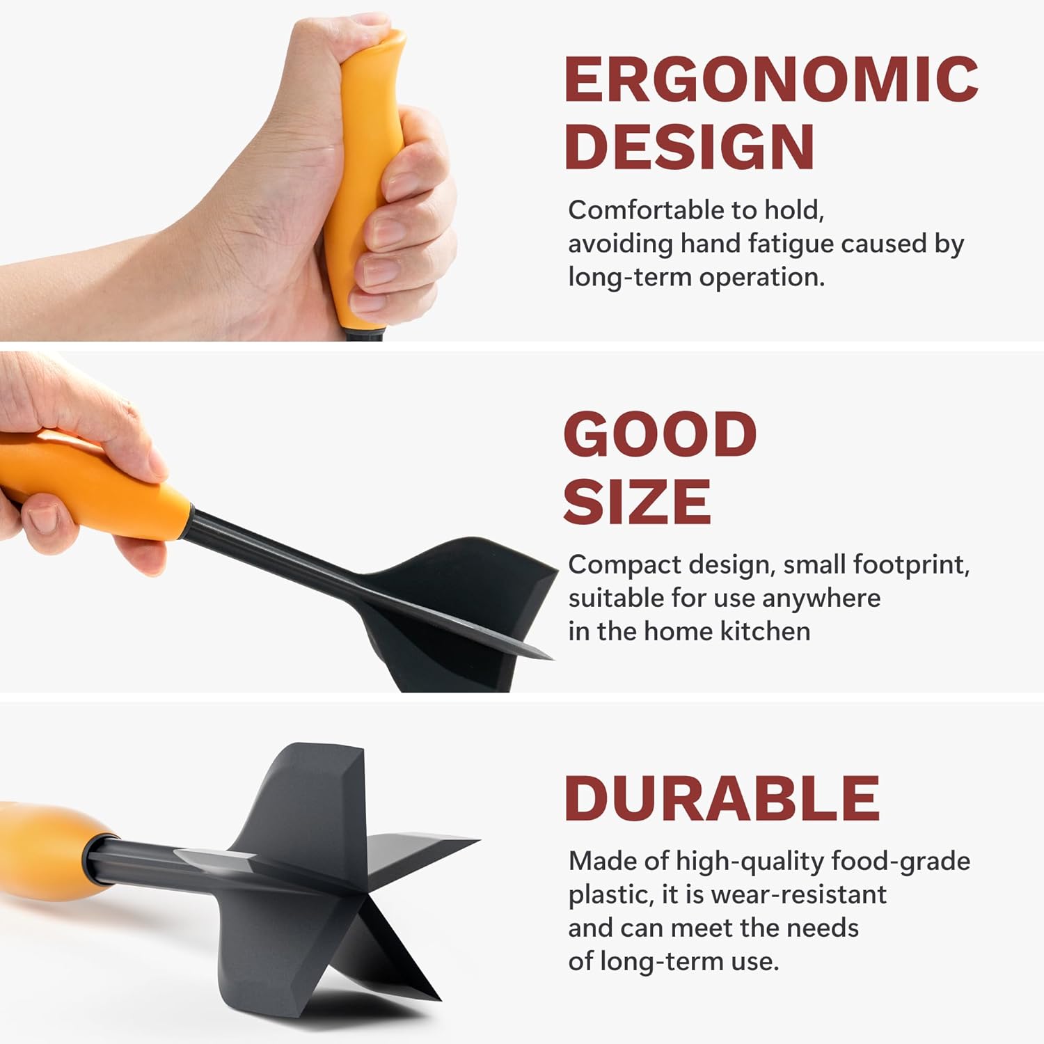 - Steady Grab: The meat smasher is made of nylon and durable, high temperature resistant up to 430℉, with ergonomic design, the blade edge is neat and smooth, will not damage your pot, can easily cut food into small pieces and maintain uniform texture