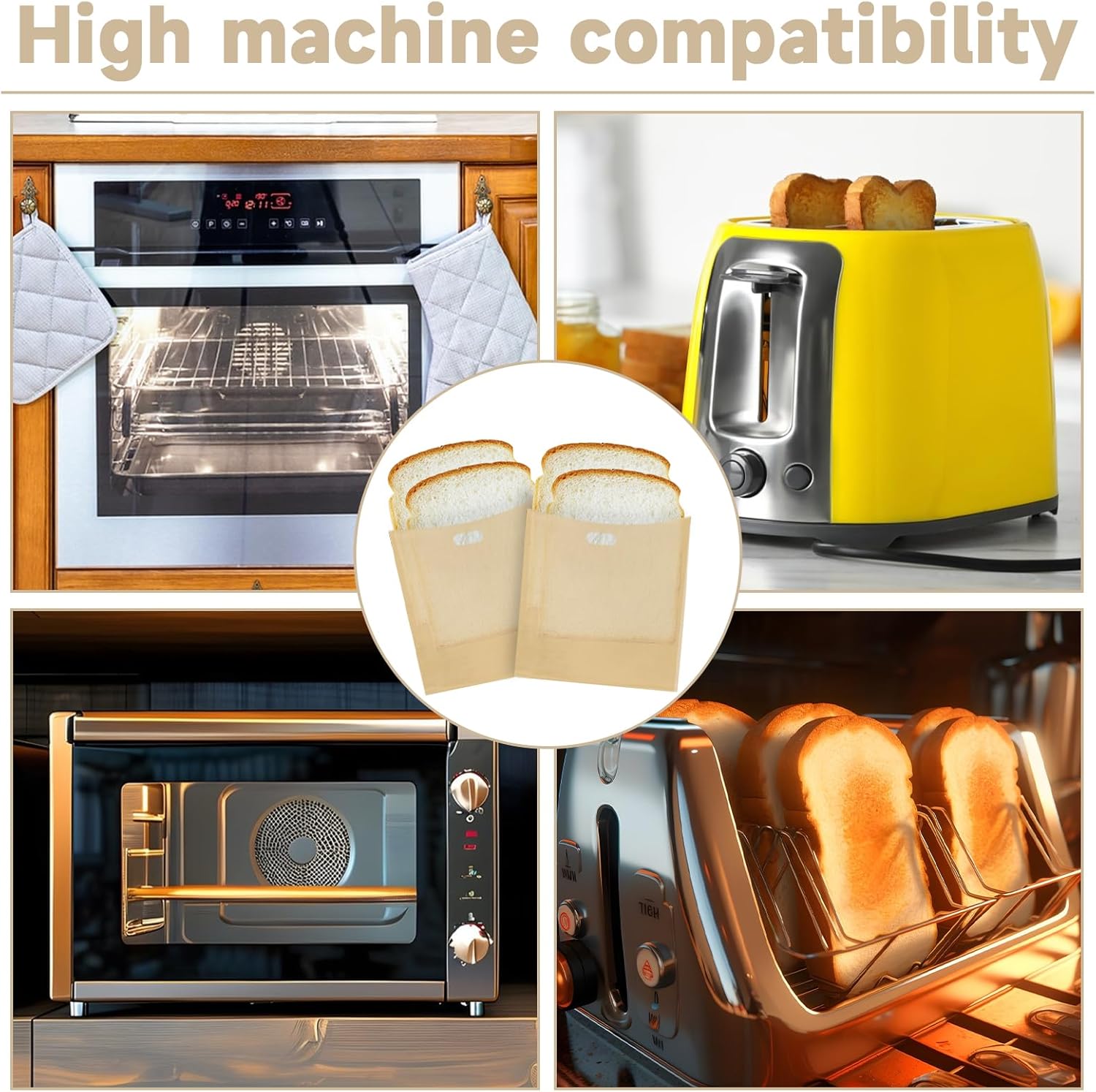 - Reusable Toaster Bags: The Teflon coating inside and outside the toaster sandwich bags ensures the non-stick properties of the toaster bags, so grilled cheese bags are very easy to clean. Reusable toaster bags can be cleaned in warm soapy water or in the dishwasher