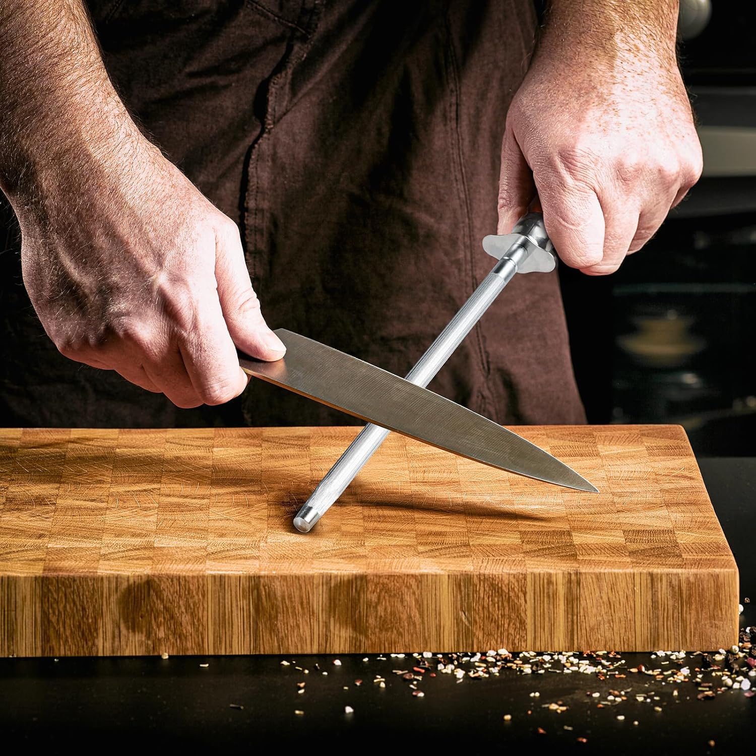 Knife Sharpener Rod, Kitchen Knives Sharpener Carbon Steel Professional Knife Sharpening Steel, Honing Rod with Hanging Holes (13 inches), N