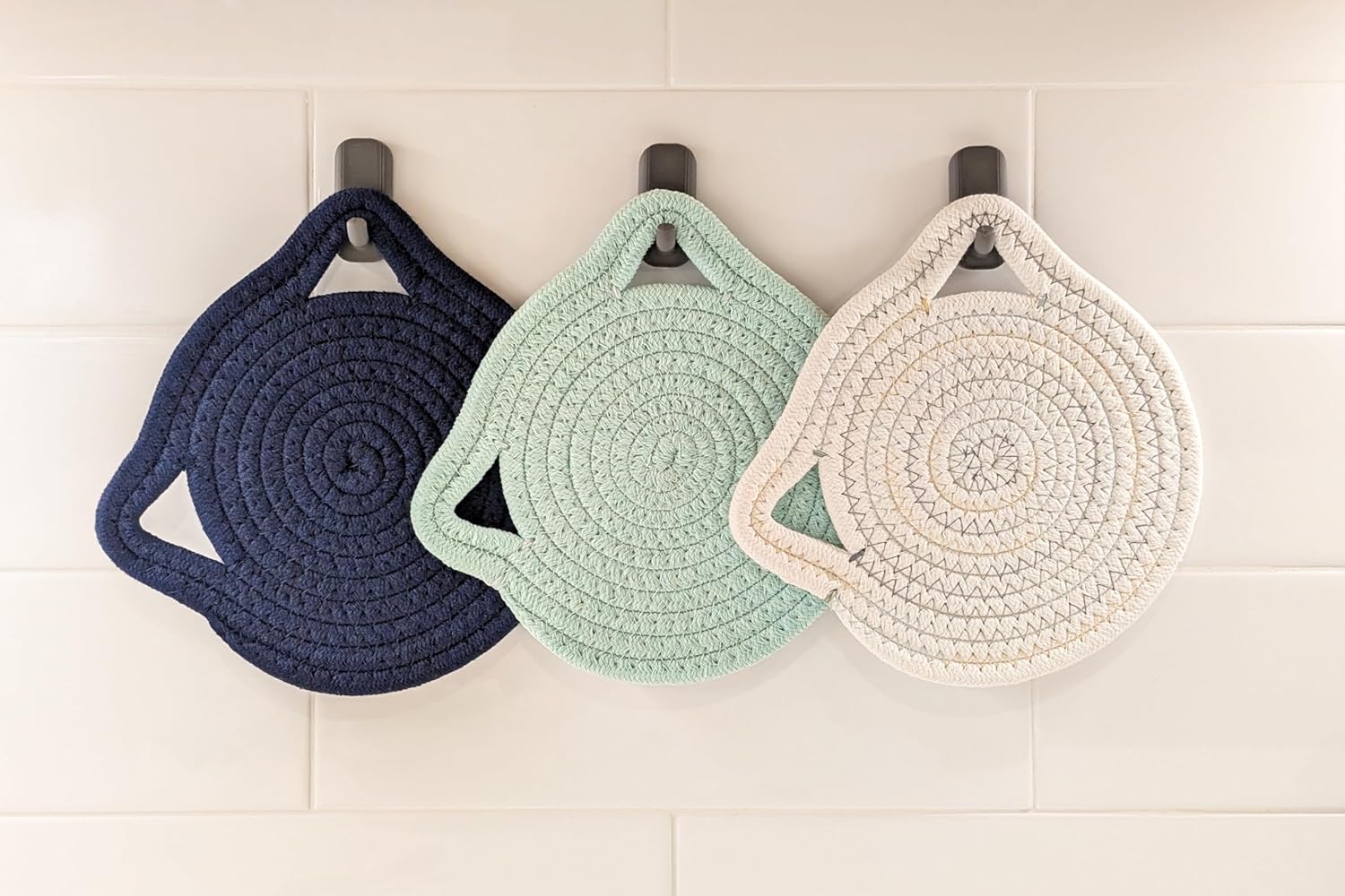 - Versatile: The trivets can be used as a base for dishes, pots, pans, plants, and more. Stack them up for storage, or hang them up with the built in cat ears.