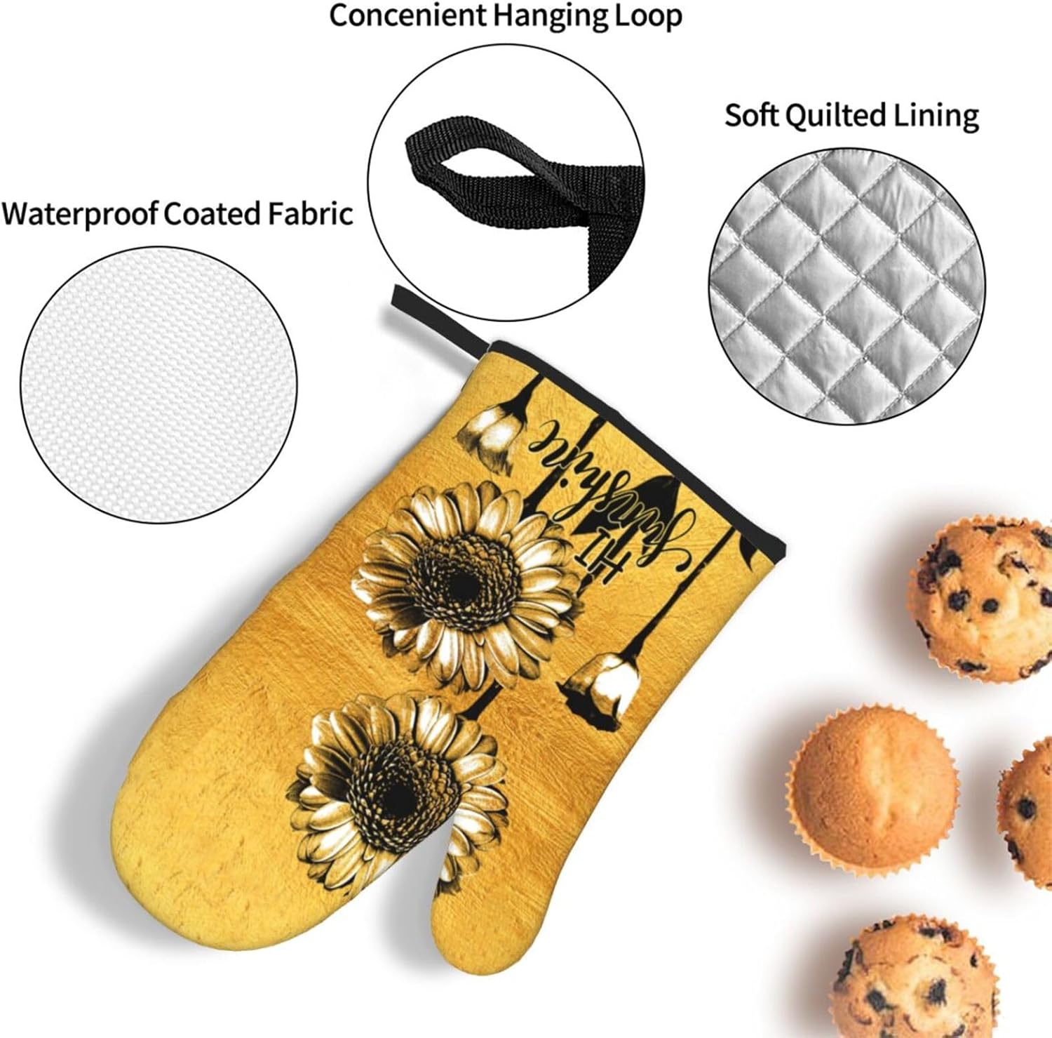 - Occasion: Sunflower oven mitts suitable for kitchen, home, microwave, ovens, cooking, baking, grilling, hotels, and BBQ, etc, birthday, dinner parties, holidays, housewarming, home decor and kitchen accessories