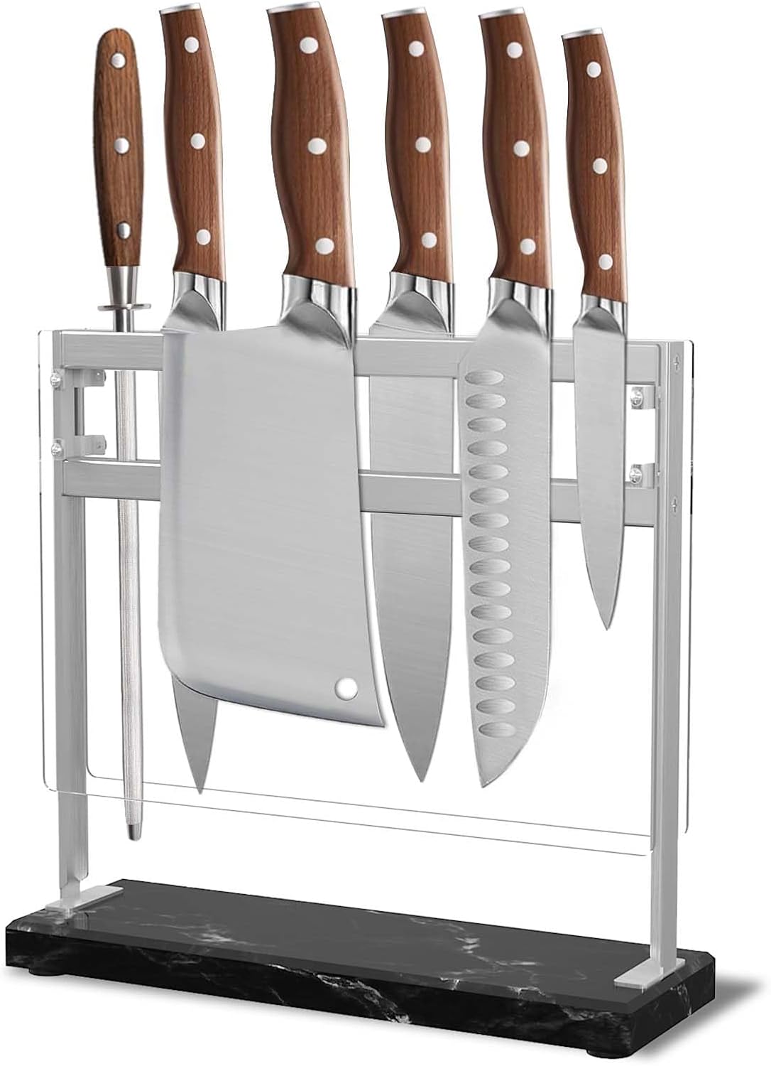 - 【Food-Grade Stainless Steel: Durable and Easy to Clean】 Crafted from high-quality food-grade stainless steel, this knife holder is rust-resistant, free from grime buildup, and protects your knife blades from damage. A quick wipe restores its shine, keeping it hygienic and ready for daily use, making it a reliable and long-lasting addition to your kitchen.