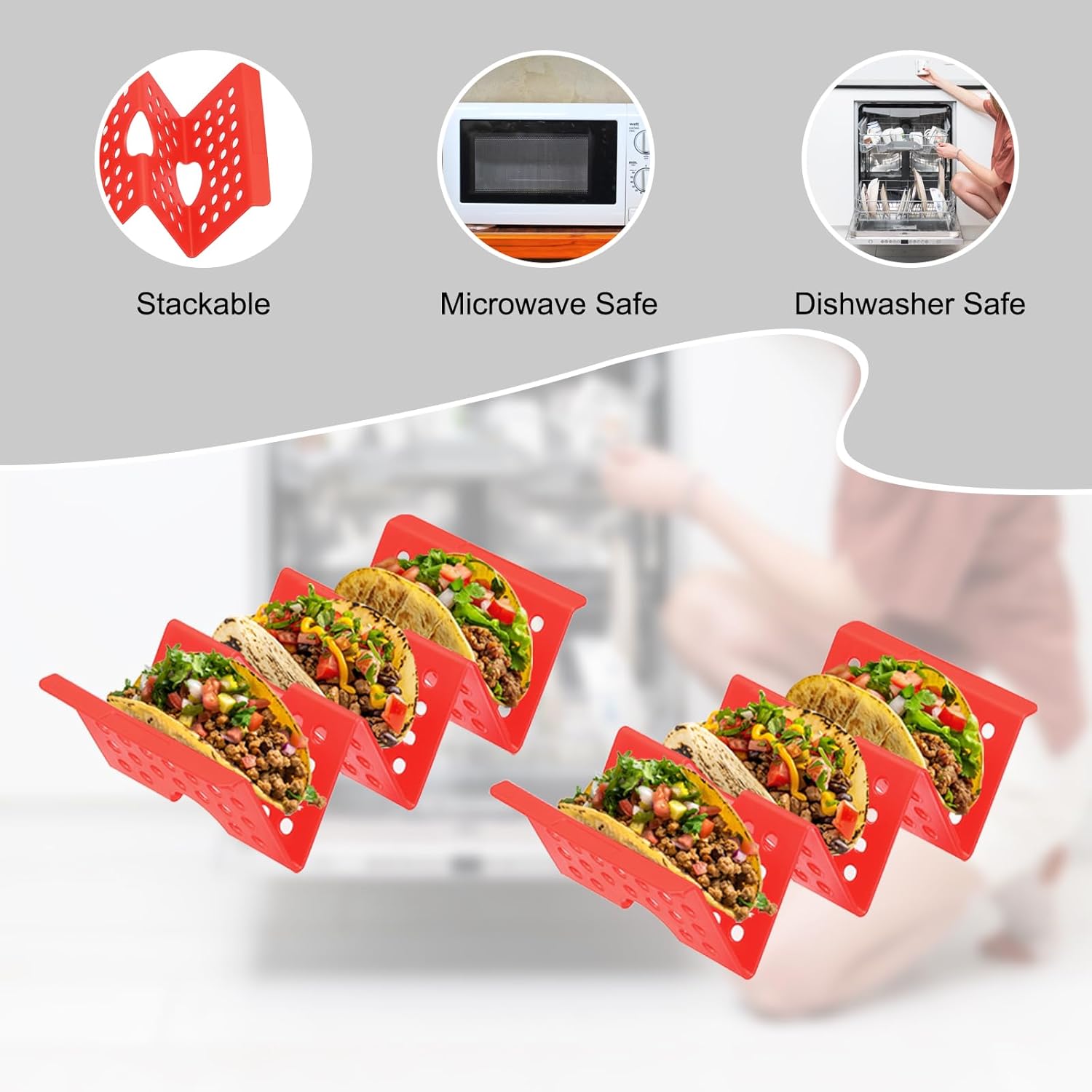 - [Easy To Clean] - Taco holder is easy to wash and available in the dishwasher and microwave. The taco tray can be stacked together after washing.