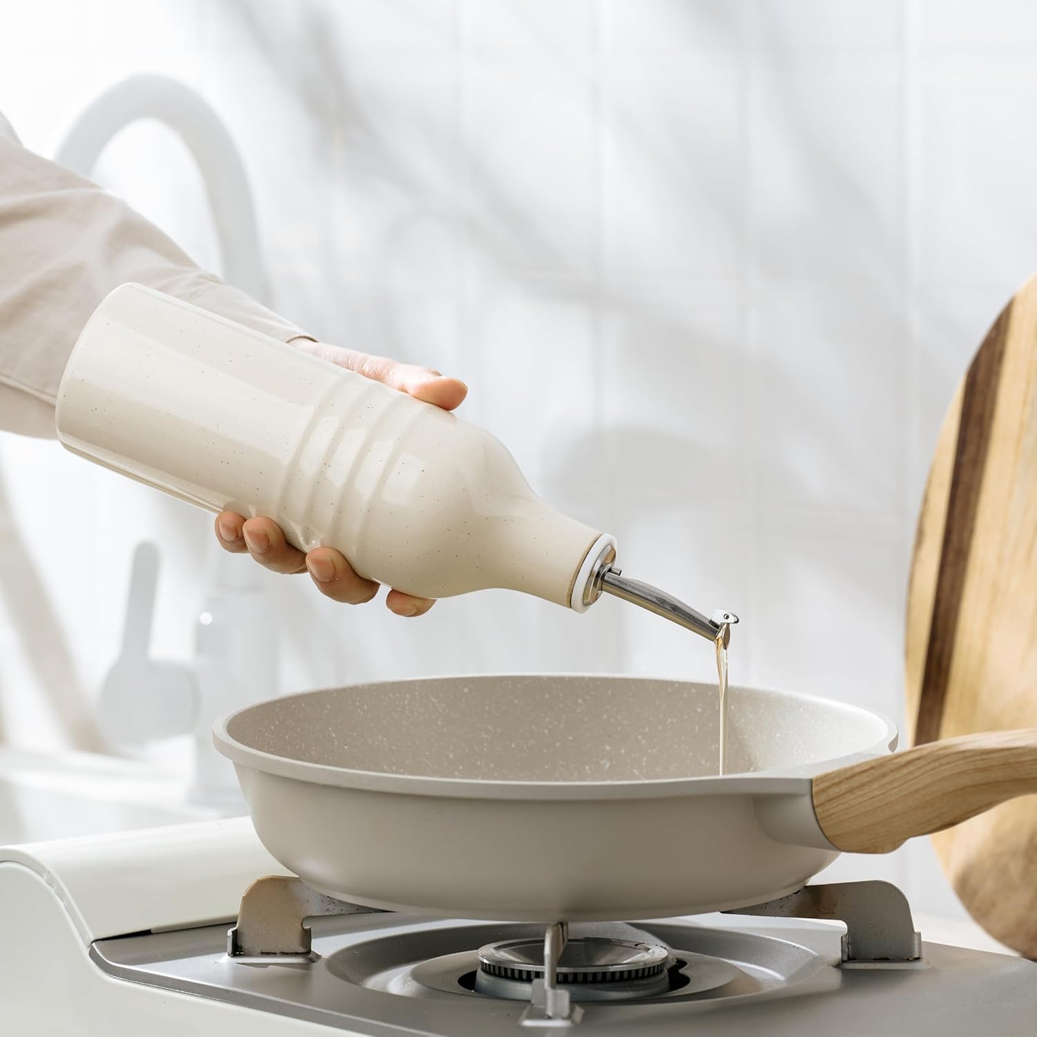 famiware Jupiter 16oz Ceramic Olive Oil Dispenser Bottle, 1 Piece Oil Dispenser for Kitchen with Stainless Steel Pourers, Suitable for Storage Vinegar, Soy Sauce, Coffee Syrup, Vanilla White