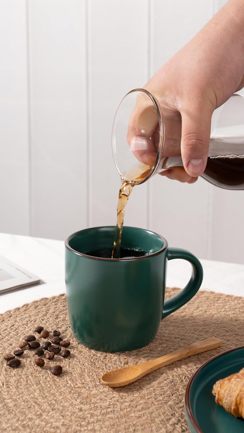 famiware Mercury Coffee Mugs 13 oz, Coffee Mugs Set of 6 with Handle, Cups for Latte, Hot Tea, Cappuccino, Mocha, Cocoa, Dark Green