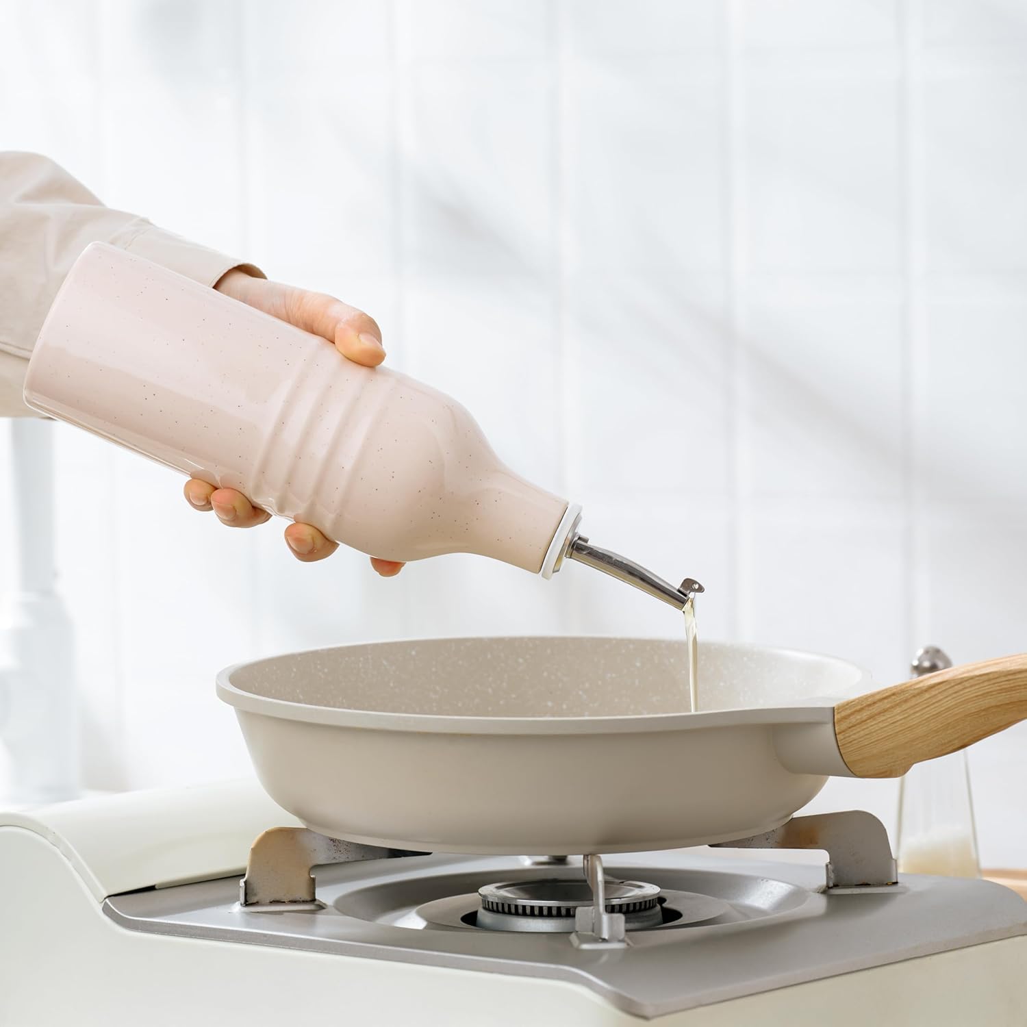 - KEEPS OIL FRESH - Exposure to light can cause olive oil to go rancid. This opaque olive oil dispenser bottle ceramic protects your olive oil or vinegar from harmful UV rays, keeping it fresh longer