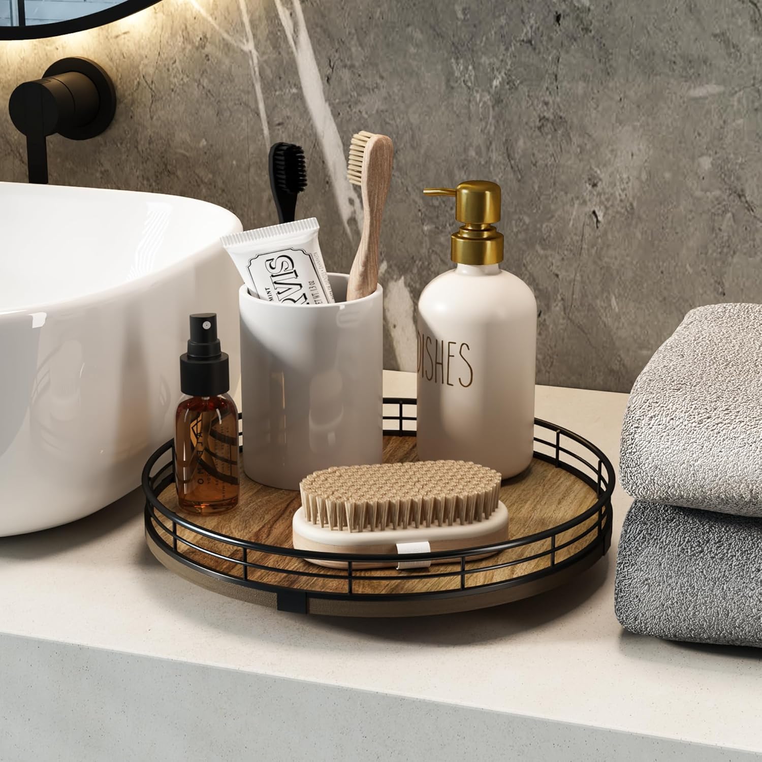 - Exquisite Texture- A turntable to meet your many home needs. Place it in your cabinet to easily store and access food, condiments, cans, medicines and more. As a coffee table tray, perfect for displaying napkin holders, vases, candles. Use it as a bathroom vanity tray to store lotions, perfumes, cosmetics, keep your life organized!