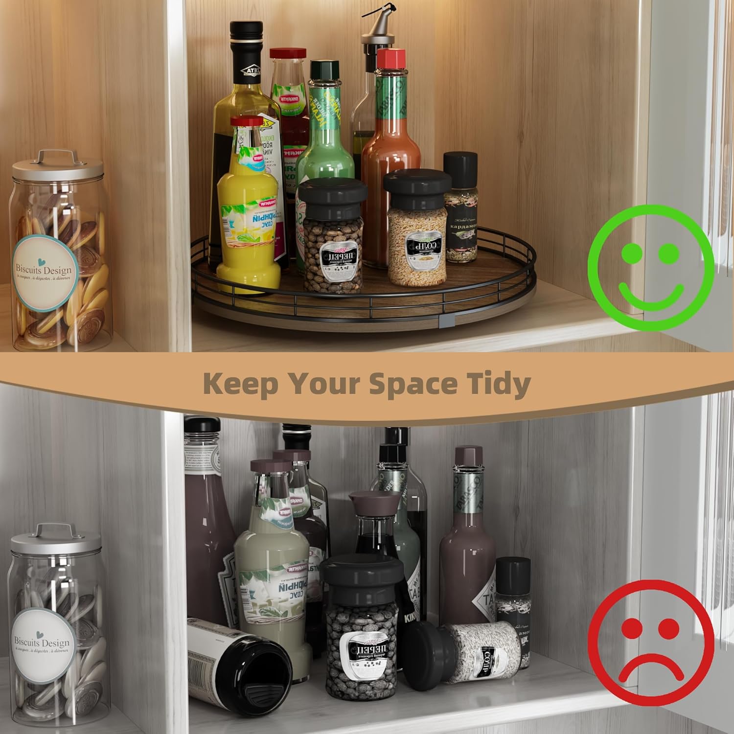 - Exquisite Texture- A turntable to meet your many home needs. Place it in your cabinet to easily store and access food, condiments, cans, medicines and more. As a coffee table tray, perfect for displaying napkin holders, vases, candles. Use it as a bathroom vanity tray to store lotions, perfumes, cosmetics, keep your life organized!