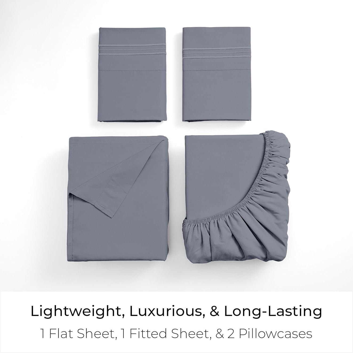 Mellanni Queen Sheets Set - 4 PC Iconic Collection Bedding - Hotel Luxury, Extra Soft, Cooling Bed Sheets - Wrinkle, Fade, Stain Resistant (Queen, Mineral Gray)