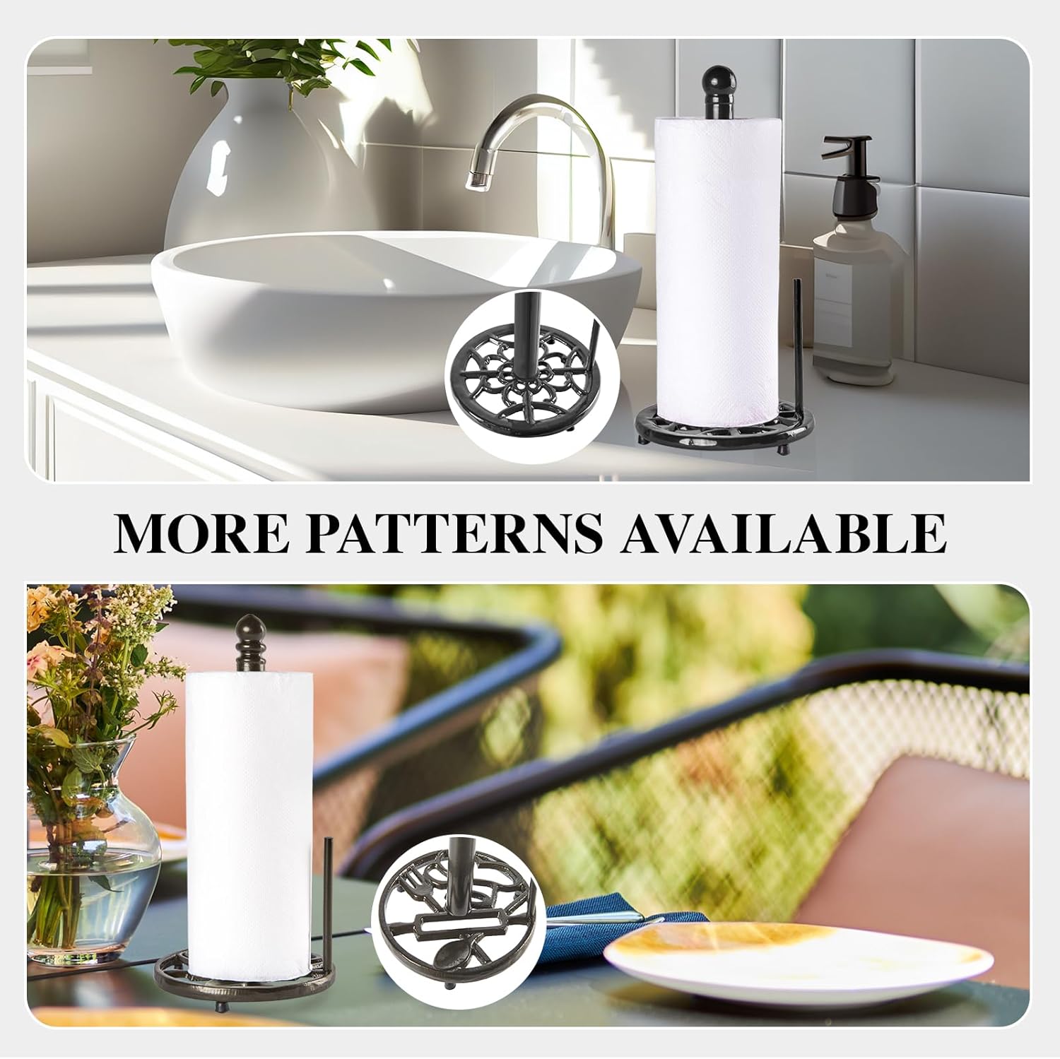 - Vintage Style & Traditional Handicraft: Vintage heavy towel paper holder with a non-slip mat which more stable and prevent kitchen table scratch, slid. Using handcrafted traditional cast iron techniques having a unique artistic style