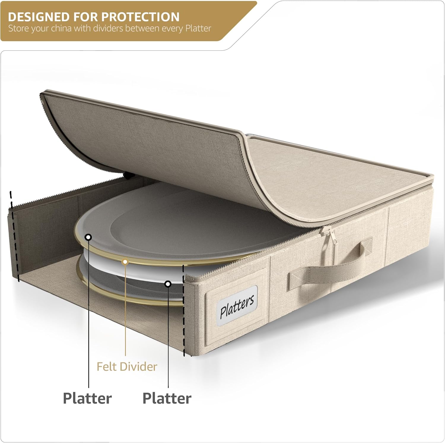 - Sorbus China Platter Storage Containers: Organize and protect serving platters, charger plates, and other large china and dinnerware with the Sorbus Serving Platter Storage Containers - Features a hard shell case, felt dividers, padded interior, carry handles, and clear label windows