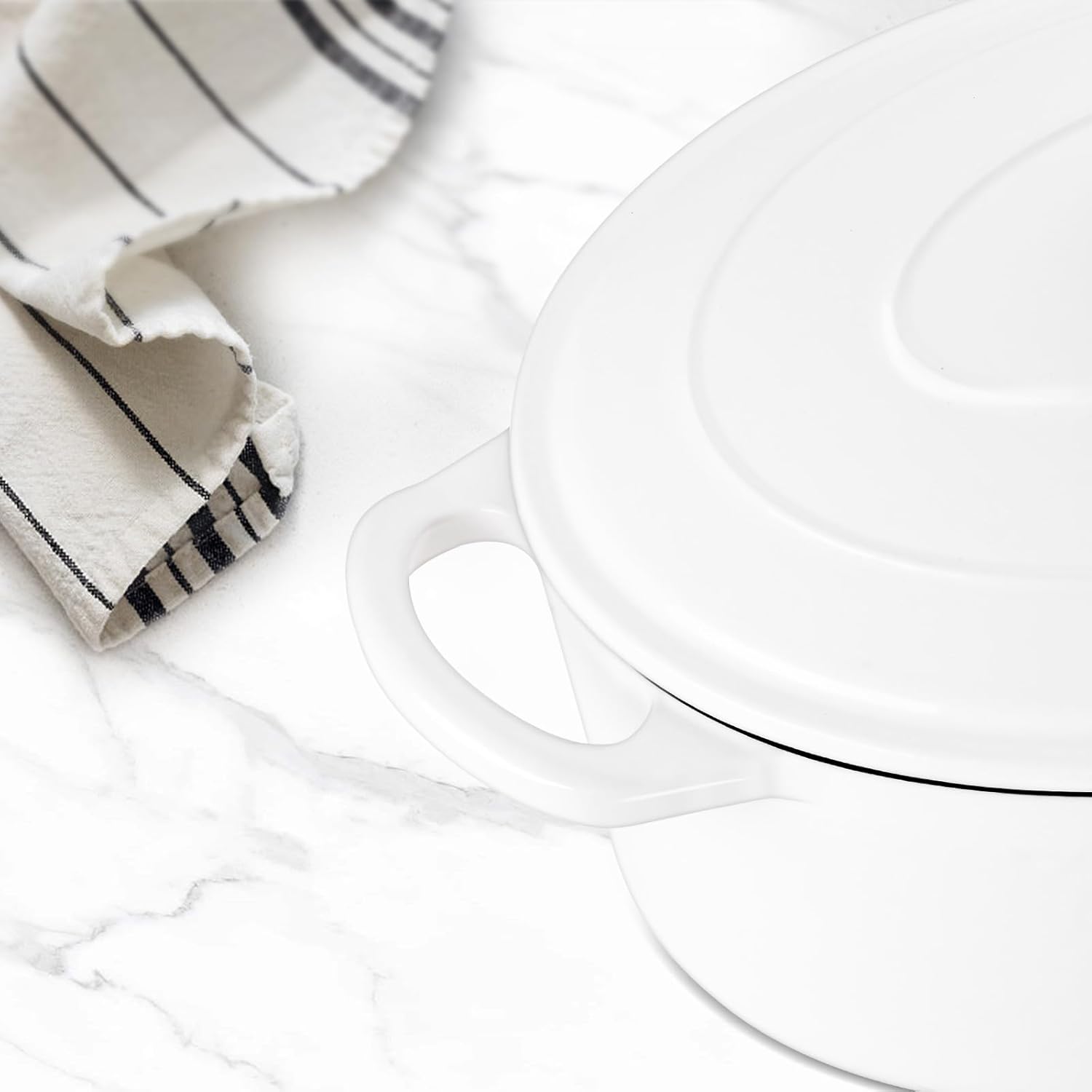 5QT Oval Dutch Oven Pot with Lid, Leonyo 5 Quart Enameled Oval Cast Iron Dutch Oven for Sourdough Bread Breaking, Heavy Duty Cookware for Braising, Stews, Roasting, White