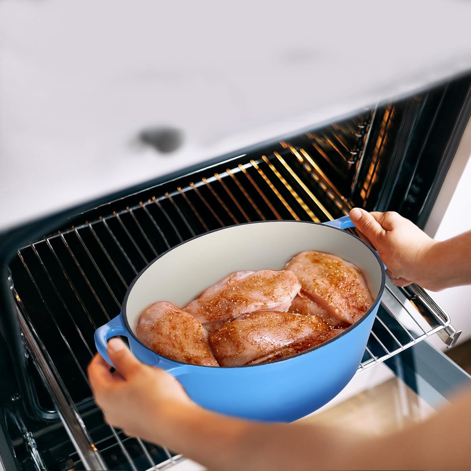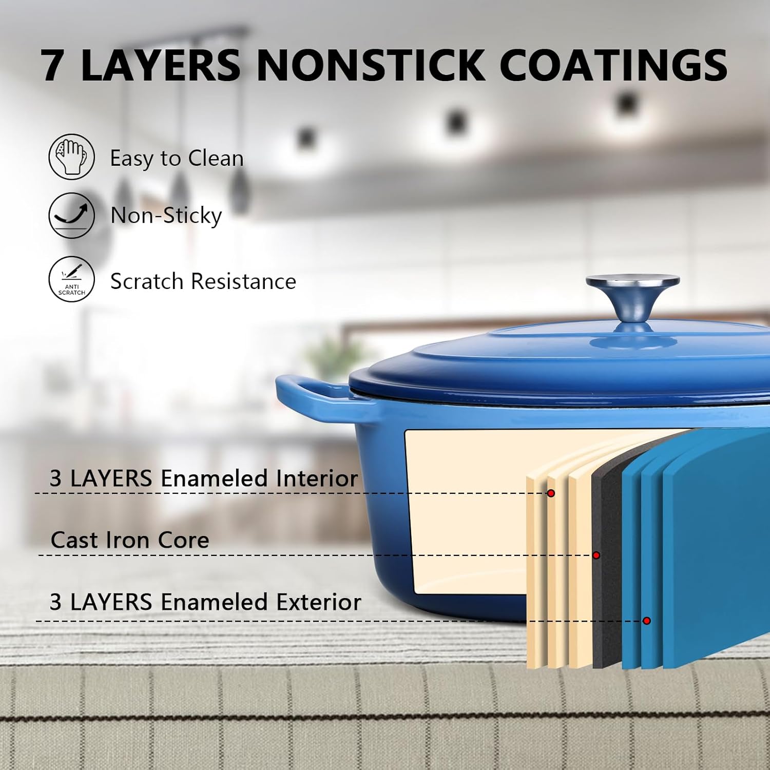 5QT Oval Dutch Oven Pot with Lid, Leonyo 5 Quart Enameled Oval Cast Iron Dutch Oven for Sourdough Bread Breaking, Heavy Duty Cookware for Braising, Stews, Roasting, Blue