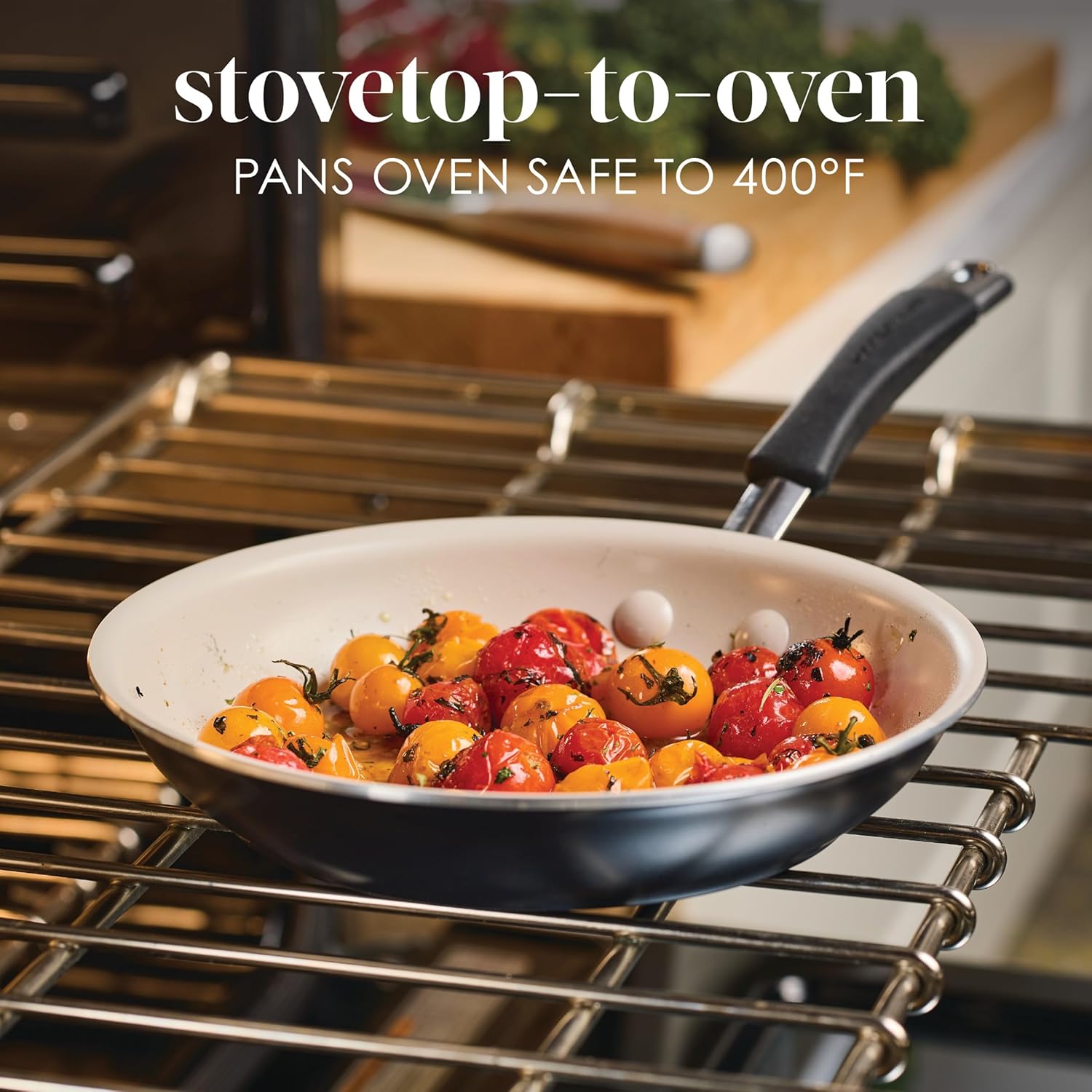 - HEALTHY CERAMIC NONSTICK: High-quality nonstick ceramic on cooking surfaces and coated rivets for easy-peasy food release and cleanup. Plus, you don’t need as much butter or oil when cooking on ceramic, making dishes that much healthier