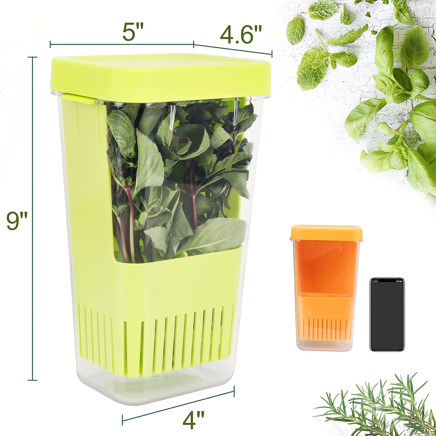- 🌿COMPACT SIZE FOR YOUR REFRIGERATOR: The measurements of the Herb Keeper are 4.6 x 5 x 9 inches. Perfect for gifting. The Herb Keeper’s compact size makes it easy to fit in the door of your typical refrigerator or in other small storage spaces.