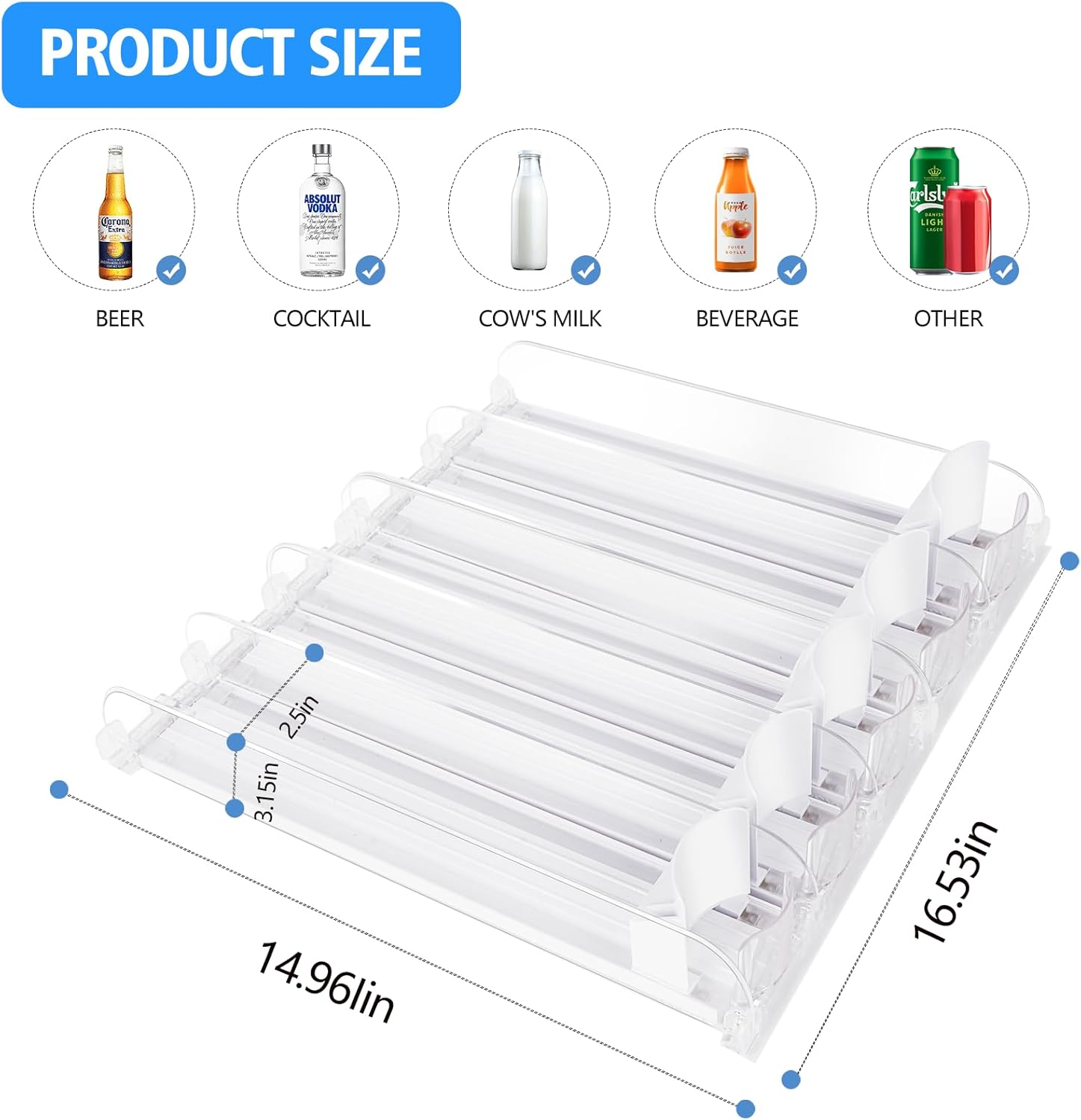 SOLY Drink Organizer for Fridge,Fridge Drink Dispenser for Fridge Automatic Pusher Glide,For Refrigerator Organizing Holds up to 14.96" D, Adjustable for 6-20oz