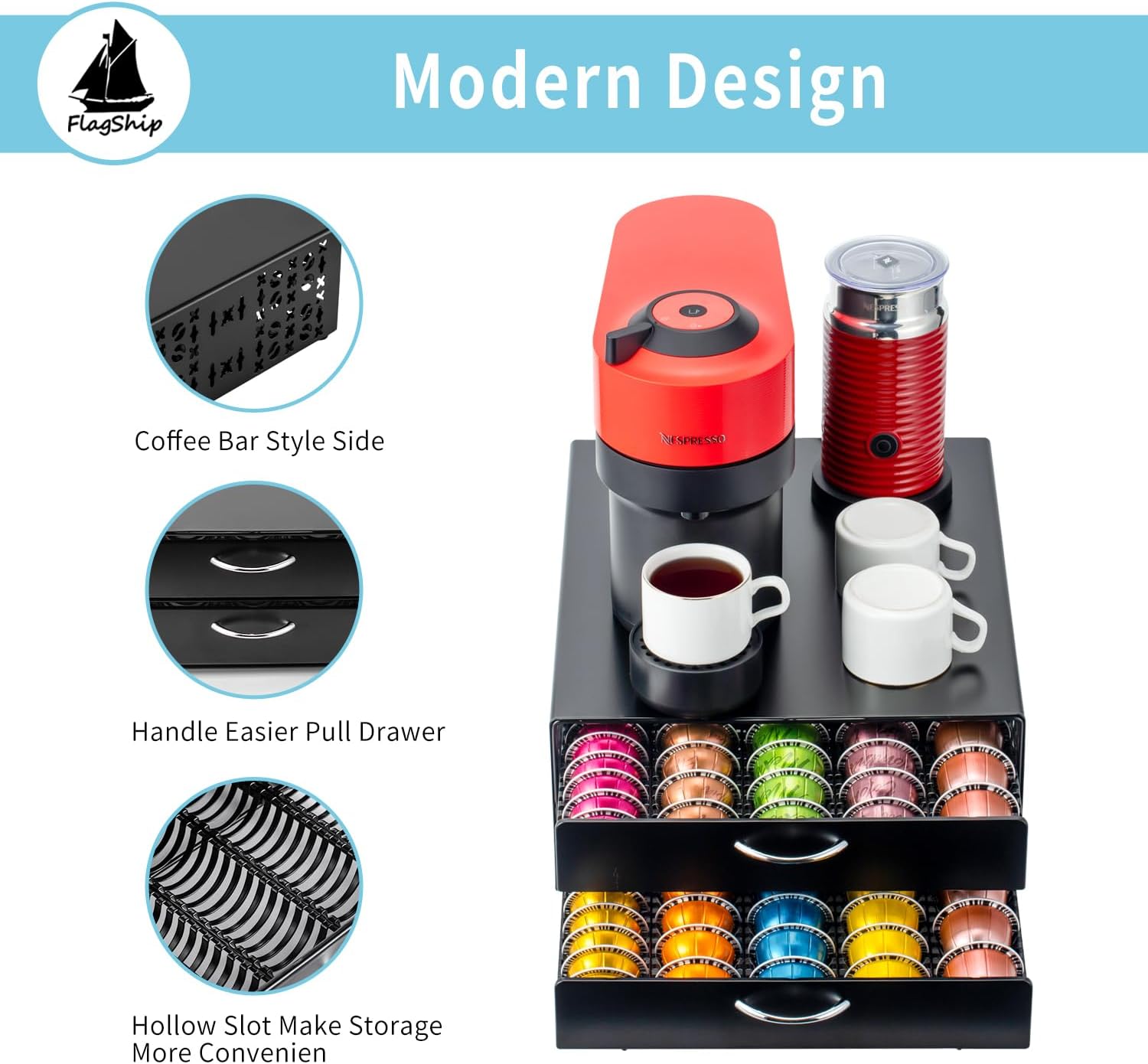 - 【Elegant, Sleek and Versatile】Flagship vertuo pod hloder adopt modern design and easy to blend into the coffee bar.Coffee Bar Style Side makes your coffee corner look even more elegant.
