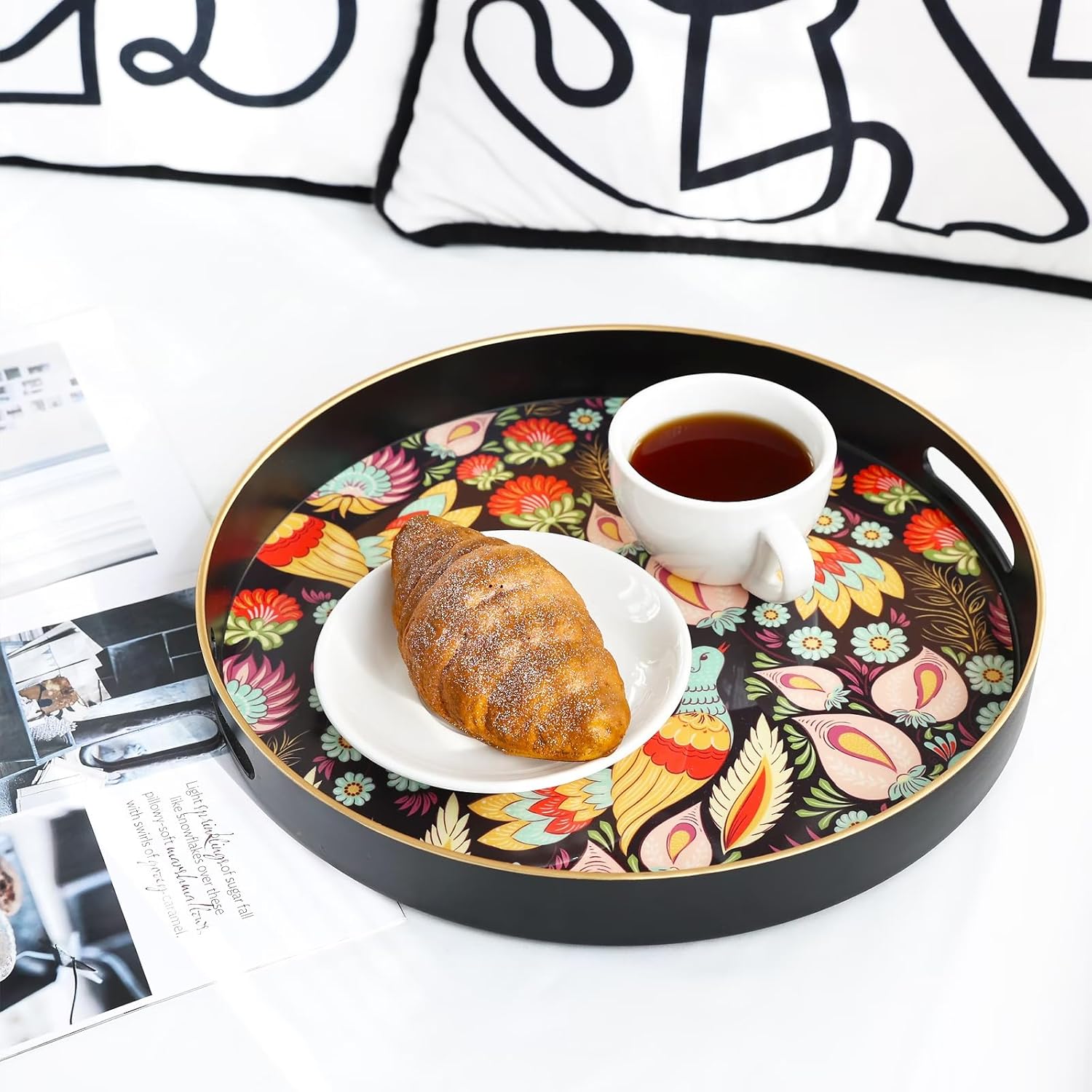 - Versatile & Stylish Design: Spsyrine serving tray with handles is perfect for any setting – from coffee tables to kitchen counters and ottomans. Use it for decoration, serving, or as a centerpiece