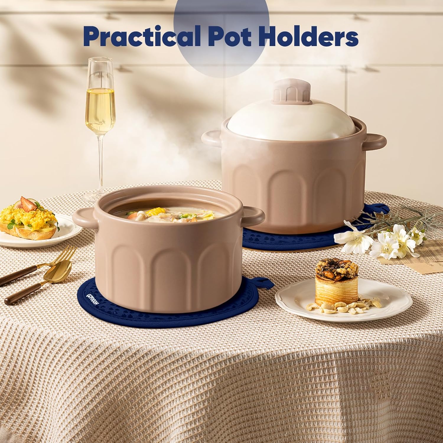 Oven Mitts and Pot Holders 4 Sets, Heat Resistant 500 ℉ Oven Mitt and Pot Holder,Oven Glove&Potholders with Non-Slip Silicone Surface,Kitchen Essentials for Cooking/Baking/BBQ-Marine Blue