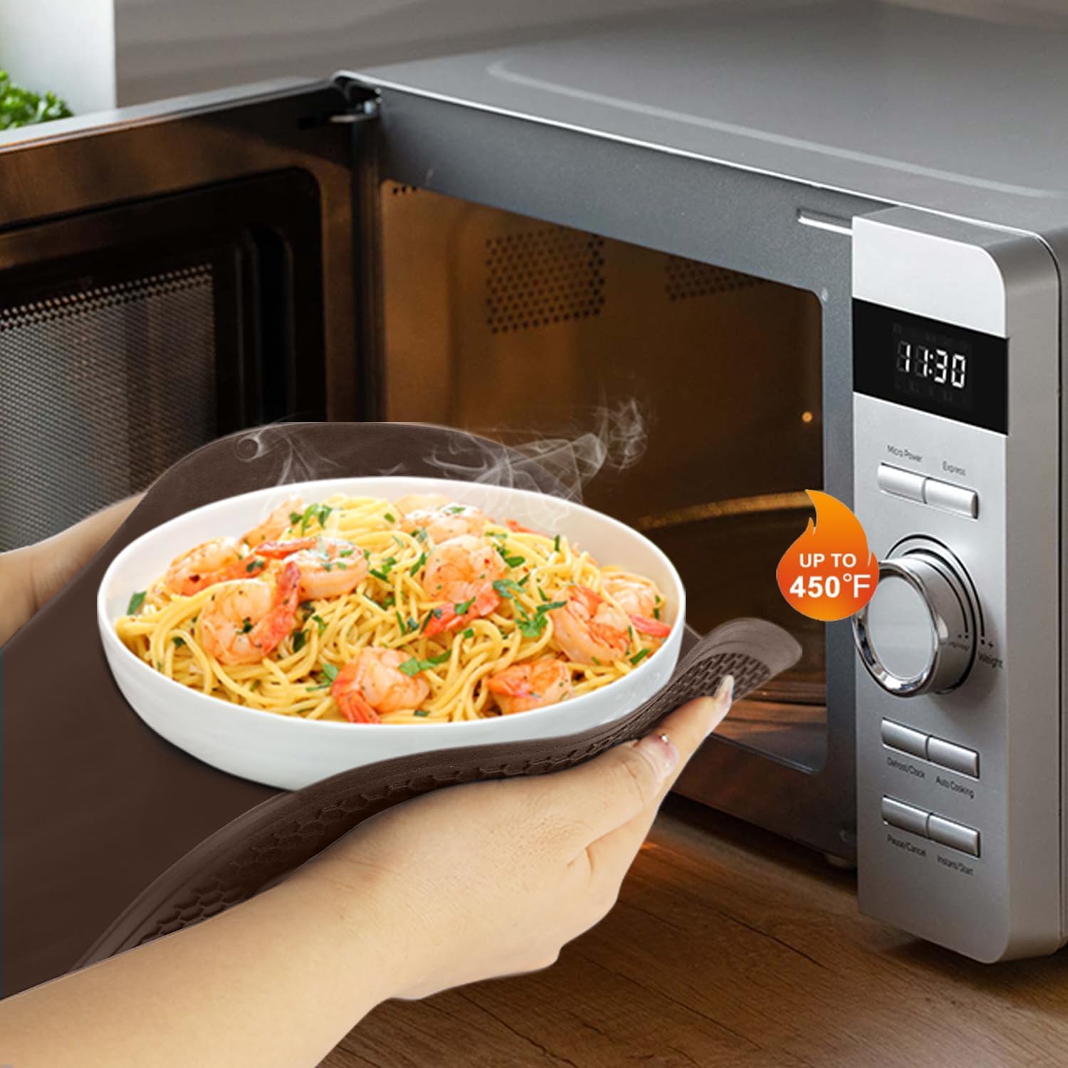 - đ„ăBetter Circulationă: Our brown microwave mat has 2mm anti-slip Texture that helps dissipate heat faster. Features raised edge to help effortlessly lift hot bowls and plates while protecting from heat. These silicone trivet mats are heat protection and insulated as a protector for countertops. Heat-resistant temperature from -40°F-446°F(-40°C to 230°C), safe for use in the oven, freezer, microwave, and as a pot holder, trivet, jar opener, spoon rest or anywhere you need extra grip or extreme heat.