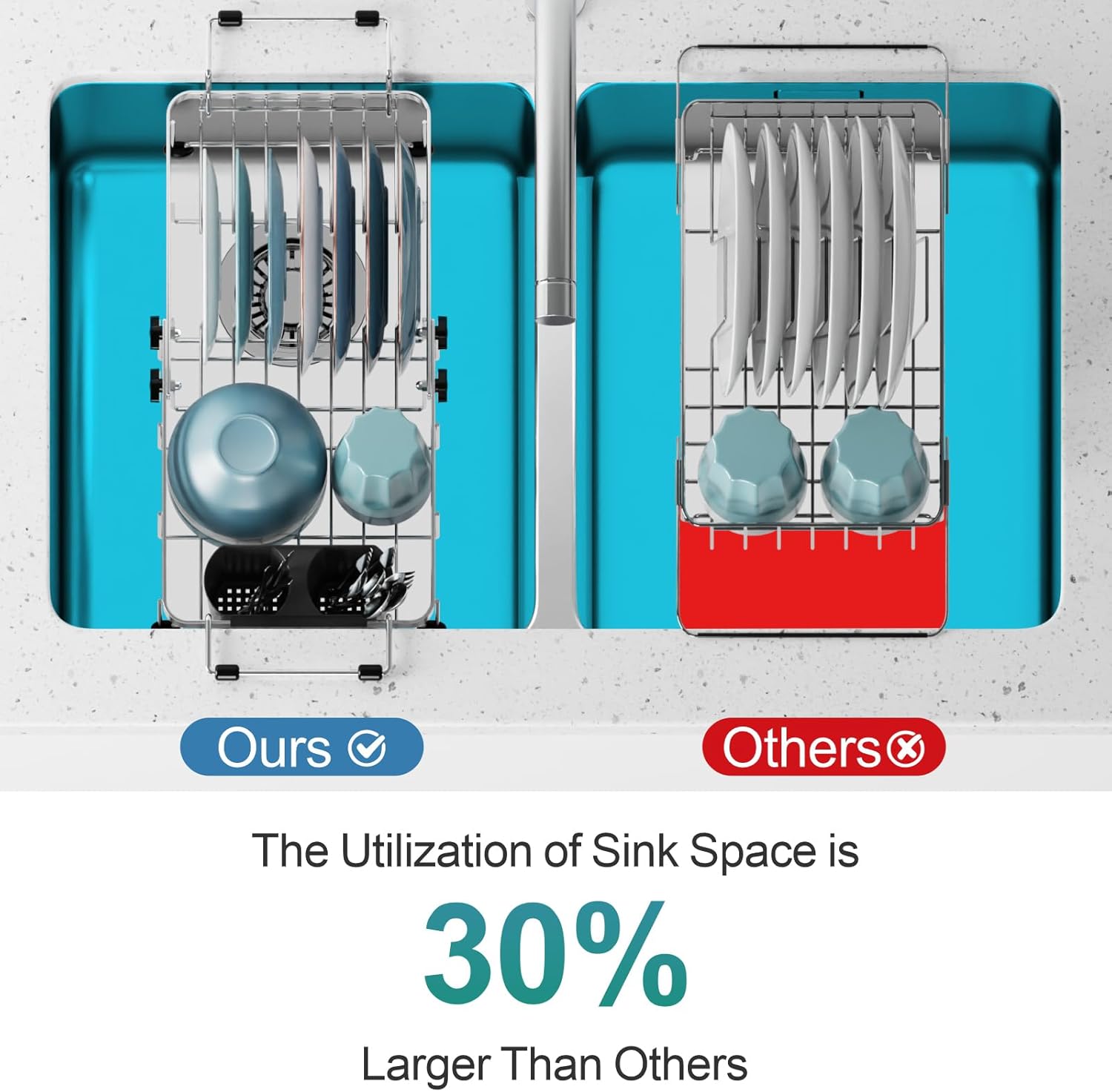 - Easy Install and Scratch-Free: Protection Setup is a breeze—no tools or complicated instructions required! With non-slip protective feet, this versatile dish drying rack sits firmly inside sink or on countertops, preventing scratches and enhancing stability during everyday use.