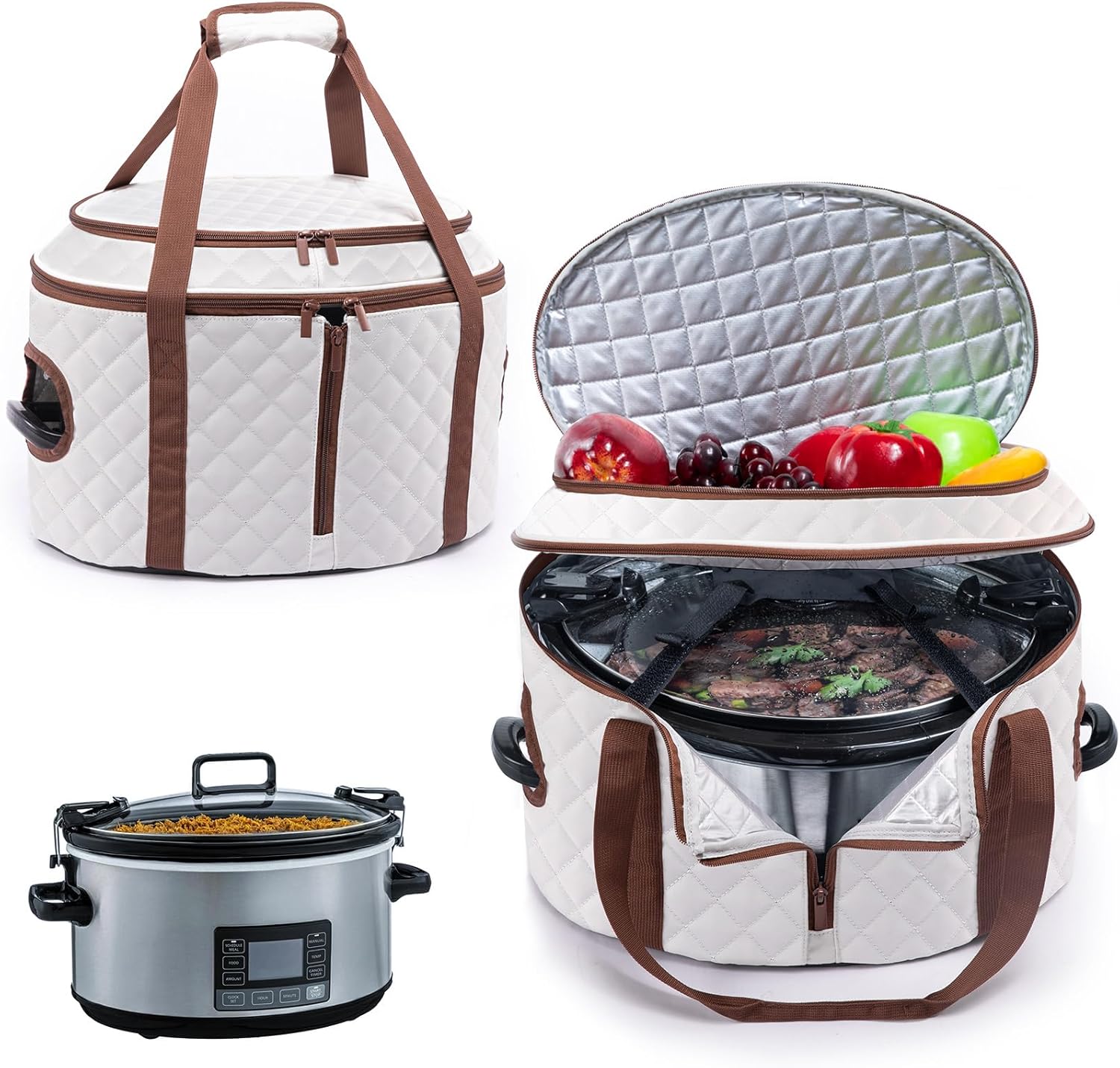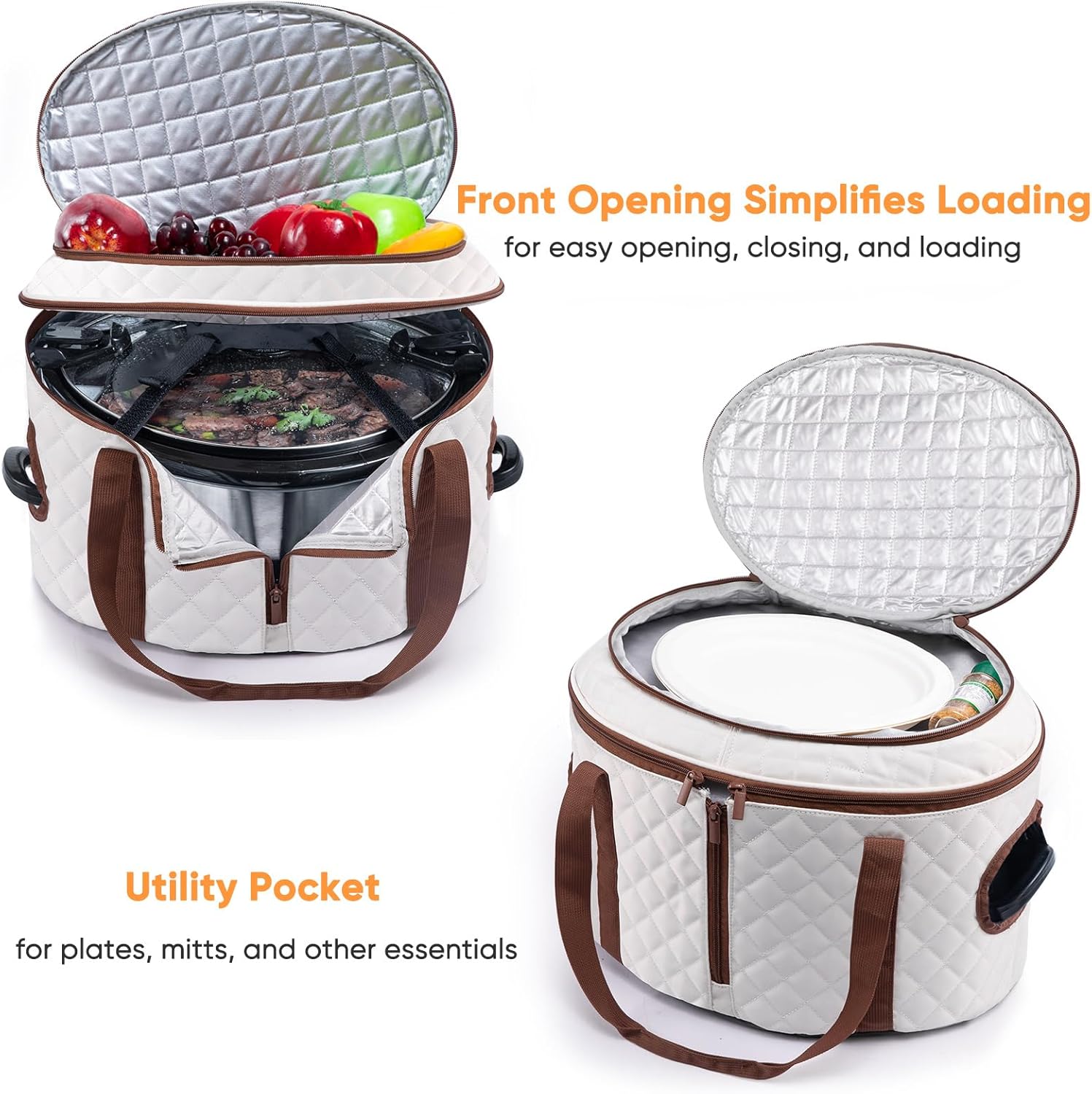 - EASY TO USD & CARRY - The front of the slow cooker caddy opens, making it easy to get your slow cooker in and out. The slow cooker bag makes it easy to transport your delicious slow cooker meals from potlucks to parties.