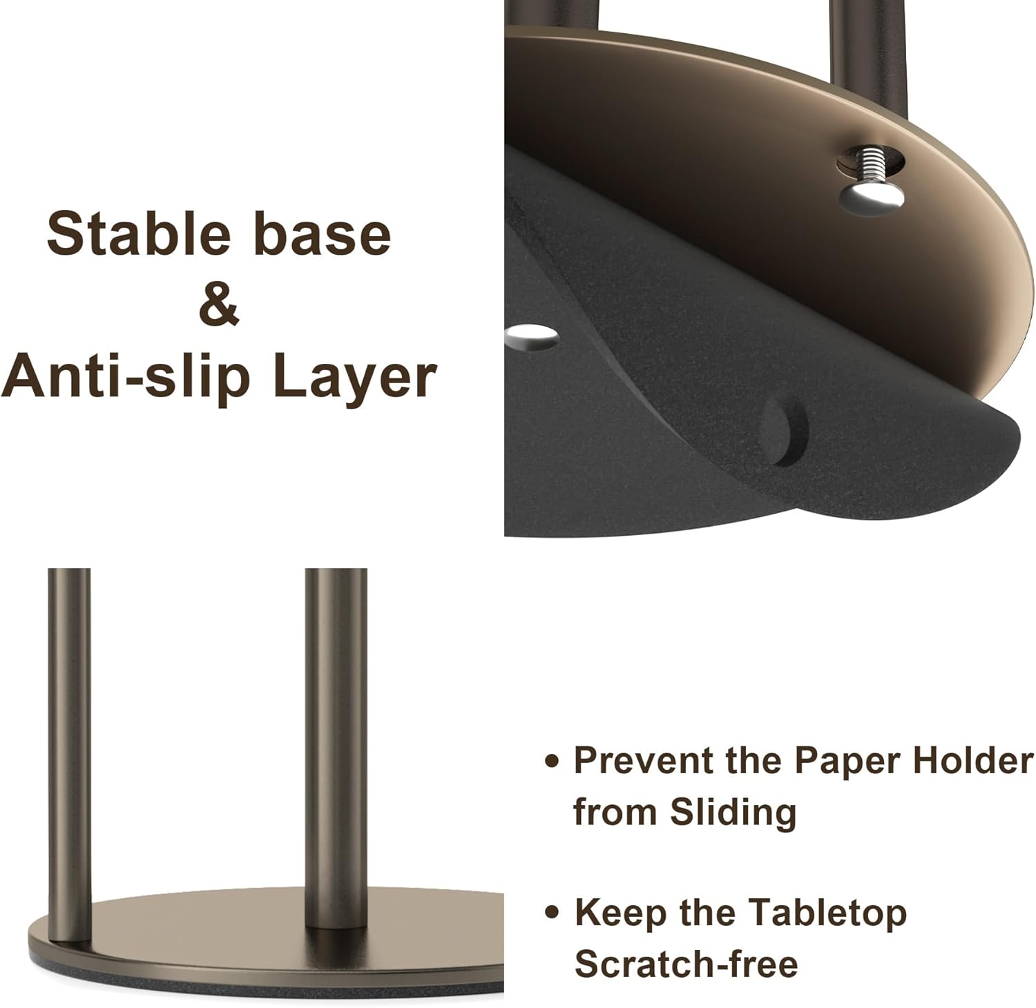 - Stable Base: The paper towel holder has a weighted base, can help you one hand-operate easily, and a non-slip silicone pad is added on the bottom to stay the paper towel holder in place when you are tearing paper sheets. It also prevents the mental scratching of your countertop.