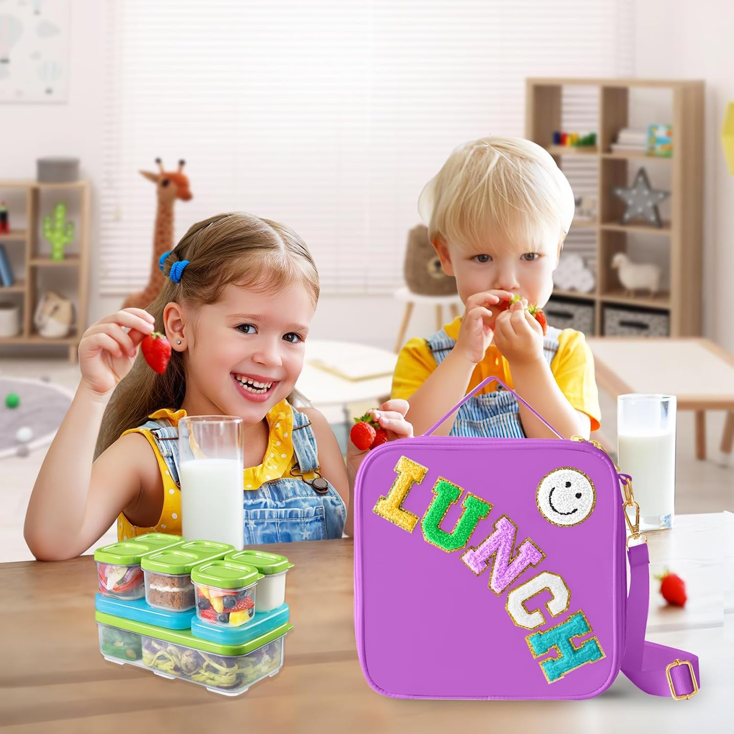Insulated Lunch Bag With Adjustable Shoulder Strap, Nylon Preppy Lunch Box Large Insulated Lunch Bag Reusable Lunch Tote Bag with Smiley Preppy LunchBag for Girls School Travel Picnic (Dark purple)