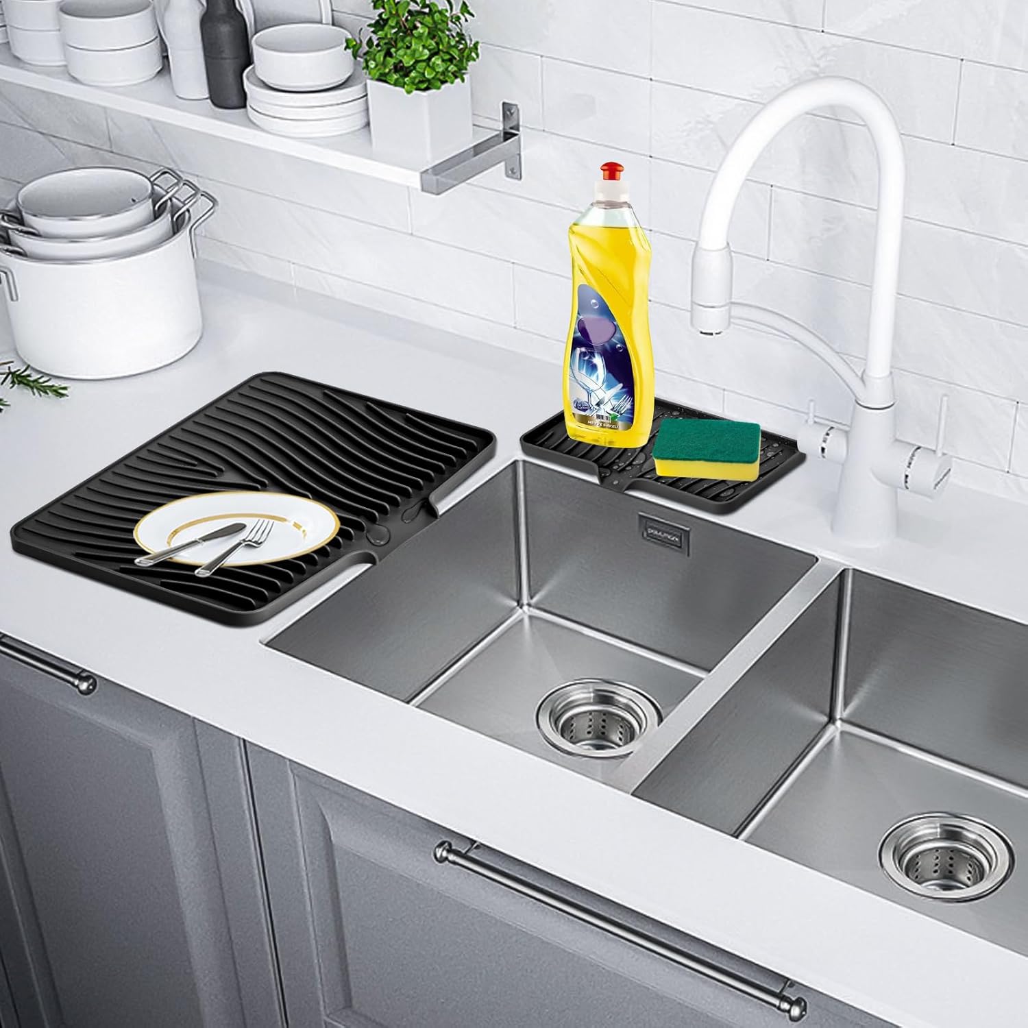 - Anti-slip & heat-resistant: TIKNIK non-slip easy clean sink mat has an anti-slip effect, which prevents tableware, vegetables, fruits and glassware from sliding off. It is also an excellent heat-resistant silicone dish drying mat that protects it from high temperatures up to 450°F/230°C, while protecting countertops and tables from hot pots or electrical appliances.