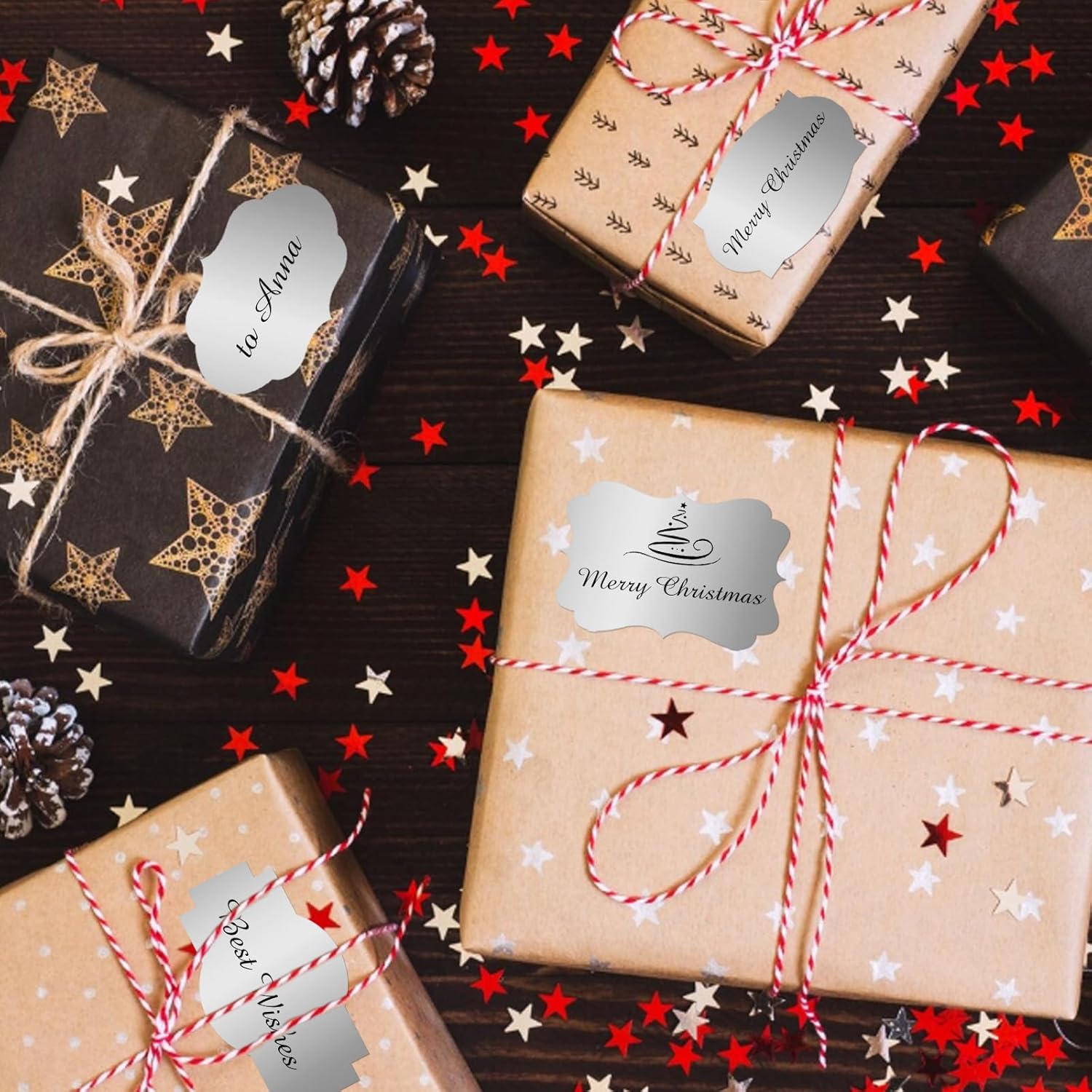 350 PCS Gift Tags Stickers, 2" x 1.2" Fancy Shape Stickers, Self-Adhesive, Handmade Bottle All-Purpose Jar Labels for Presents, Cosmetic Decoration Jars, Food Craft (Silver)