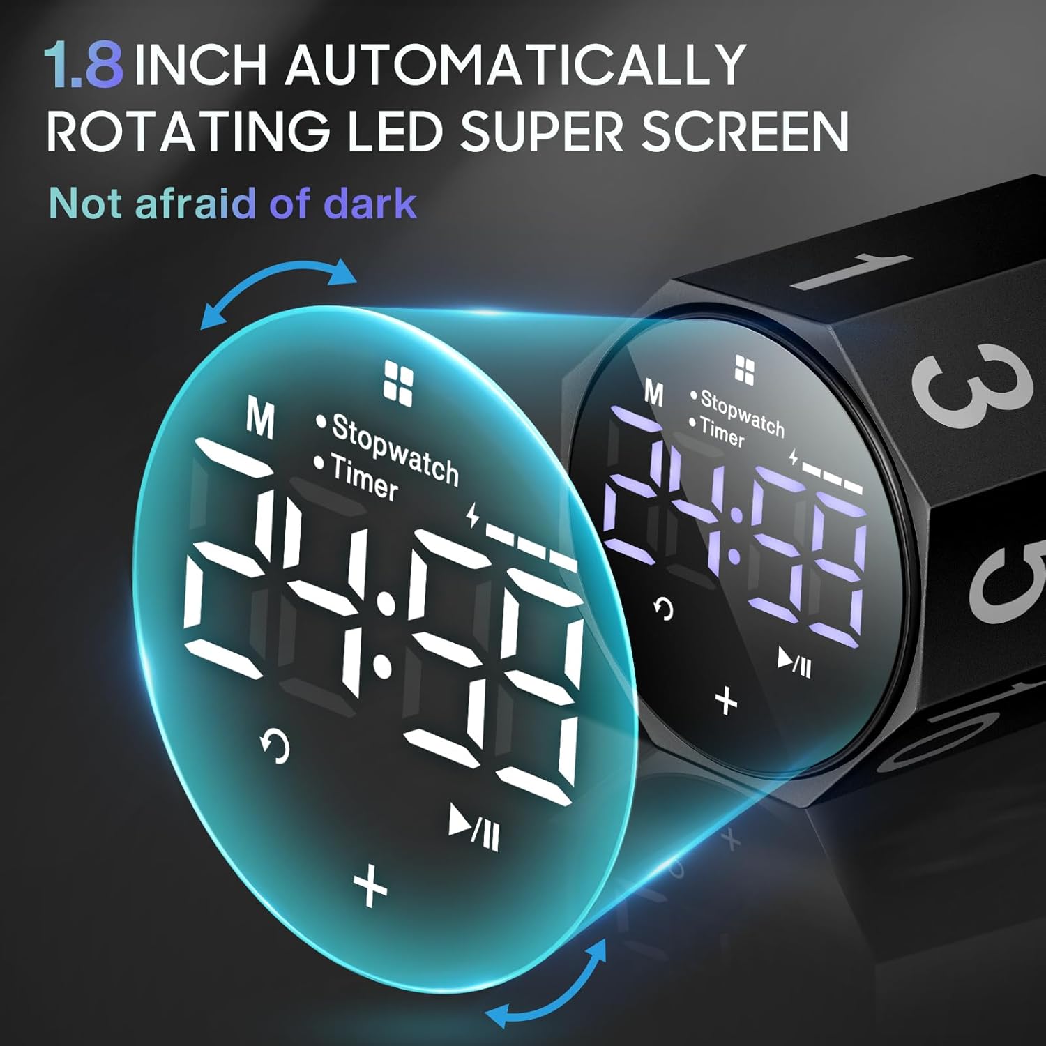 - 【Unique Pomodoro Timer】Pomodoro timer is made of aluminum alloy with a stylish and simple matte texture. The 1.8 In LED large screen digital display allows you to quickly confirm the time. Its screen can rotate automatically, and the scroll timer is set to the time you want. The screen will also rotate until it stops at the exact time, which is very convenient and interesting.
