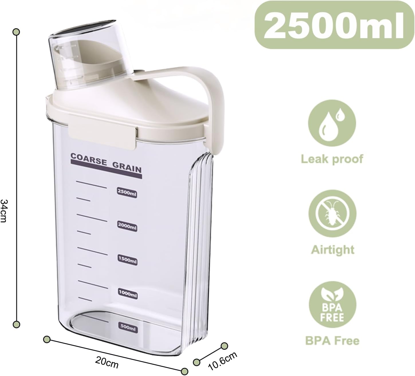 - Food-Grade & BPA-Free: Trust our durable plastic container for safe, fresh food storage. Transparent design for instant visibility. Generous 2500ML cereal dispenser in sleek white complements any kitchen. Space-saving design maximizes storage efficiency.