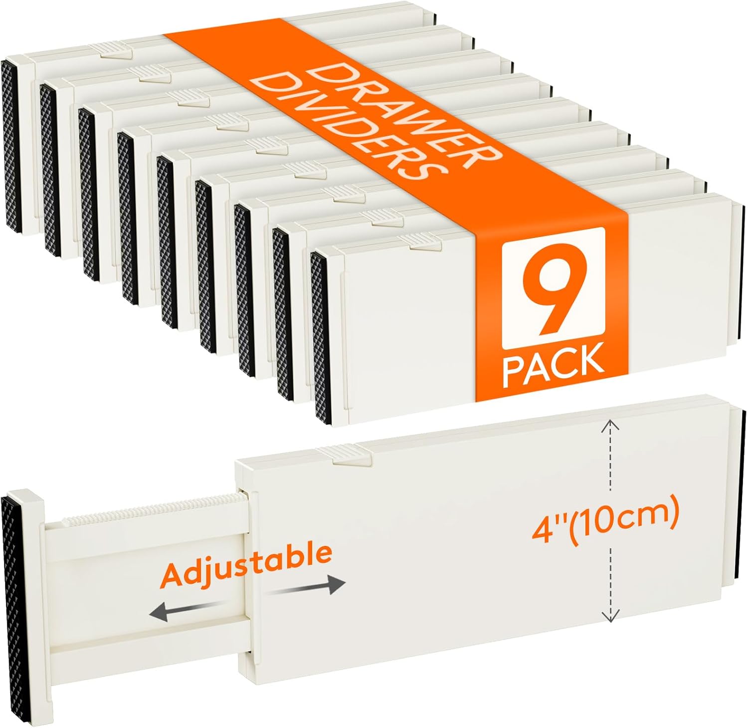 Lifewit 9 Pack Drawer Dividers 4" High, 11-17" Adjustable Drawer Organizers for Clothes, Expandable Dresser Separators in Bedroom/Bathroom/Kitchen/Fridge/Office Organization and Storage, Beige