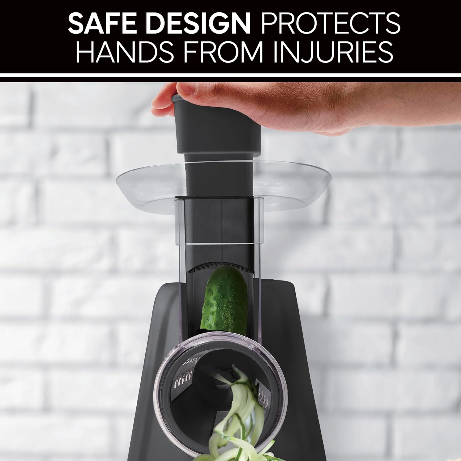 - Powerful 150W Motor for Efficient Performance: The high-powered motor ensures quick and precise grating and slicing, making it ideal for handling tougher ingredients like root vegetables and harder cheeses with minimal effort.